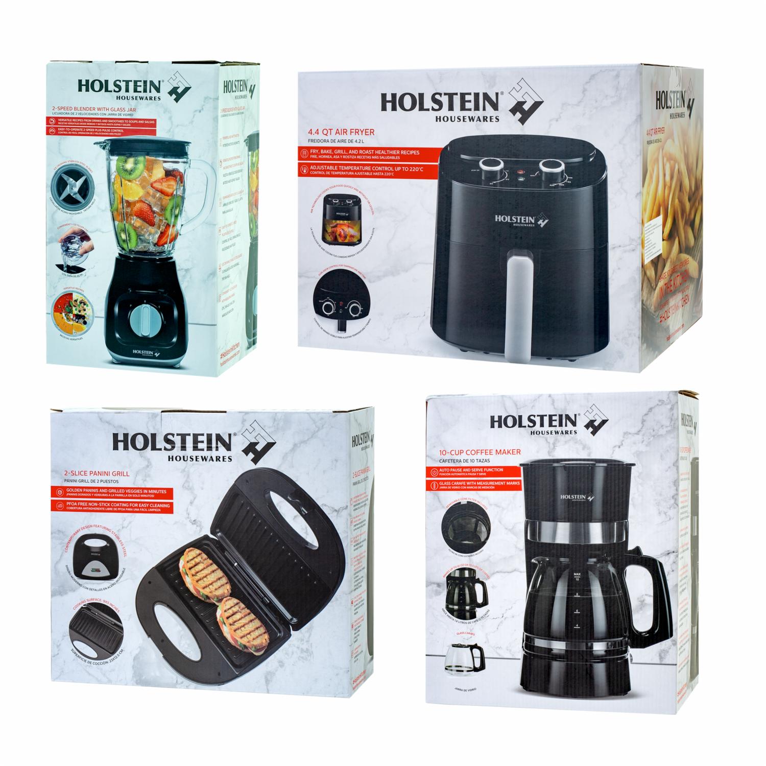 - Transforma tu experiencia en la cocina con este completo set de electrodomésticos HOLSTEIN. Con este set tendrás las herramientas necesarias para preparar una gran variedad de recetas, desde bebidas hasta comidas completas, con facilidad y eficiencia. Diseñado para complementar tu cocina con estilo y funcionalidad