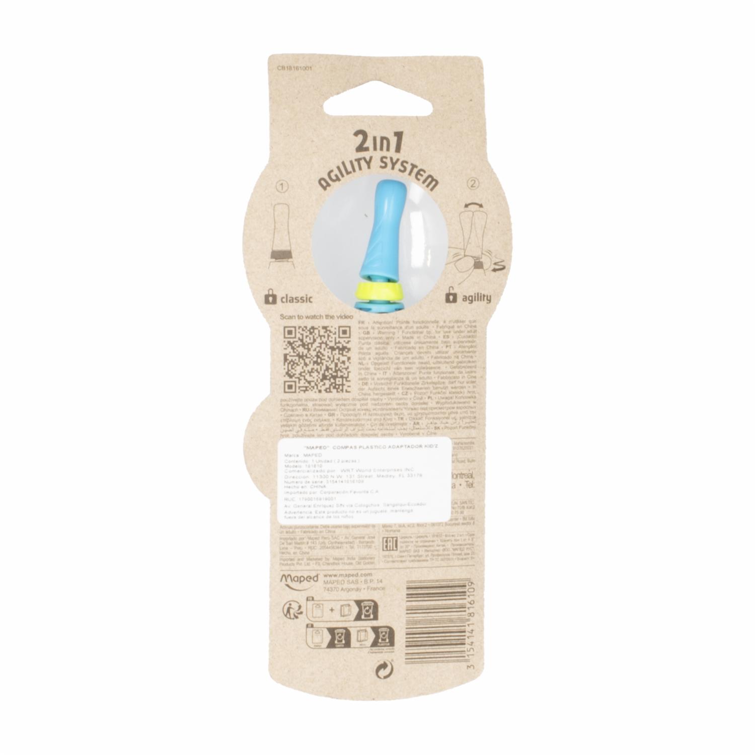 - Explora el mundo de la geometría con el Compás Plástico Maped Kidz 360! Con su adaptador, este compás te permite trazar círculos perfectos en tus proyectos escolares y de arte