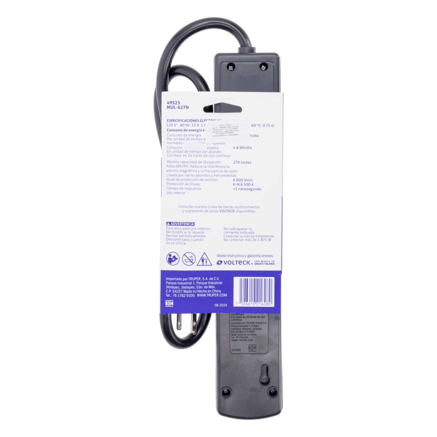 - Cortapicos VOLTECK 6 tomas: protección confiable contra sobretensiones, diseño robusto y compacto. Ideal para el hogar o la oficina