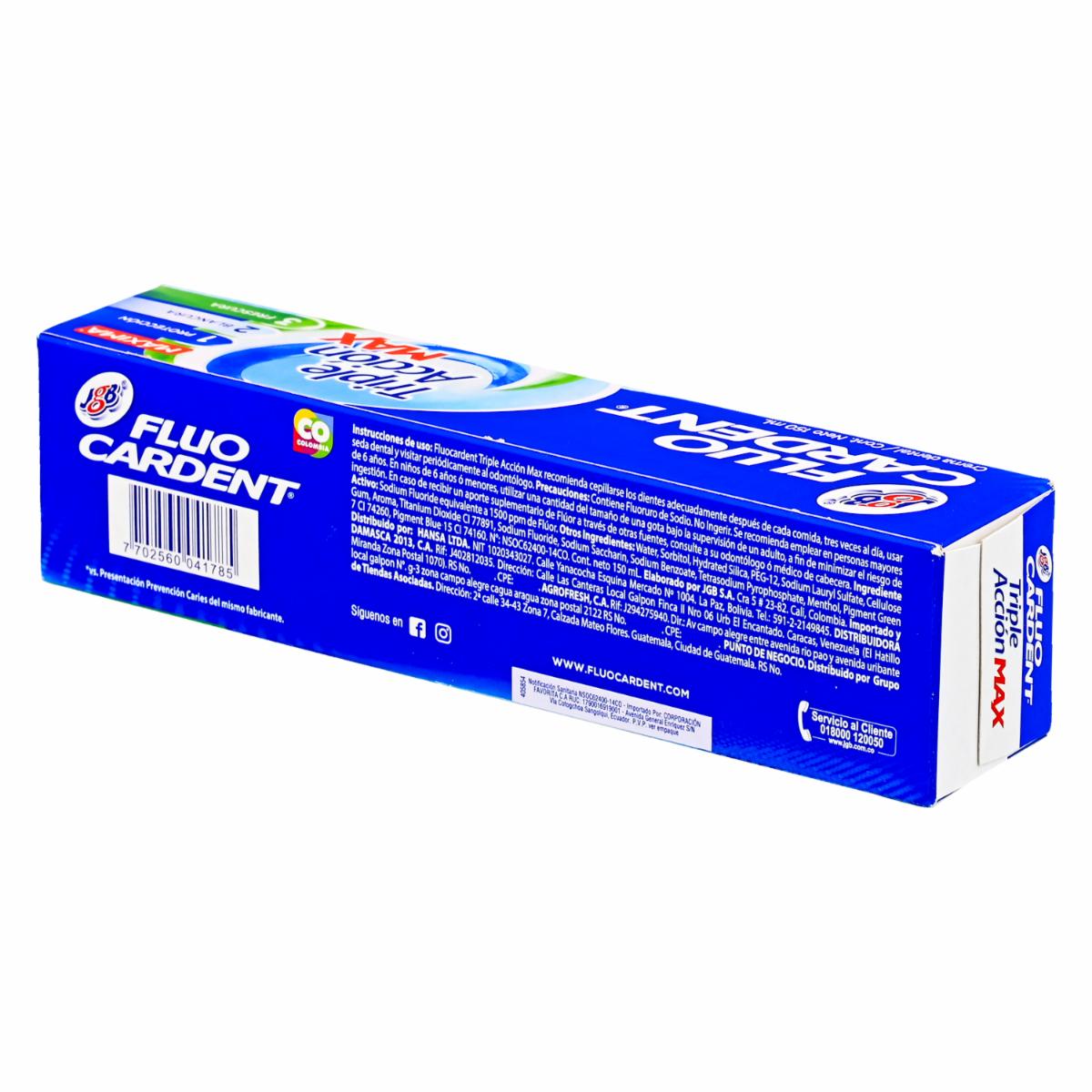 Crema Dental Triple Acción Max FLUO CARDENT 150 Ml