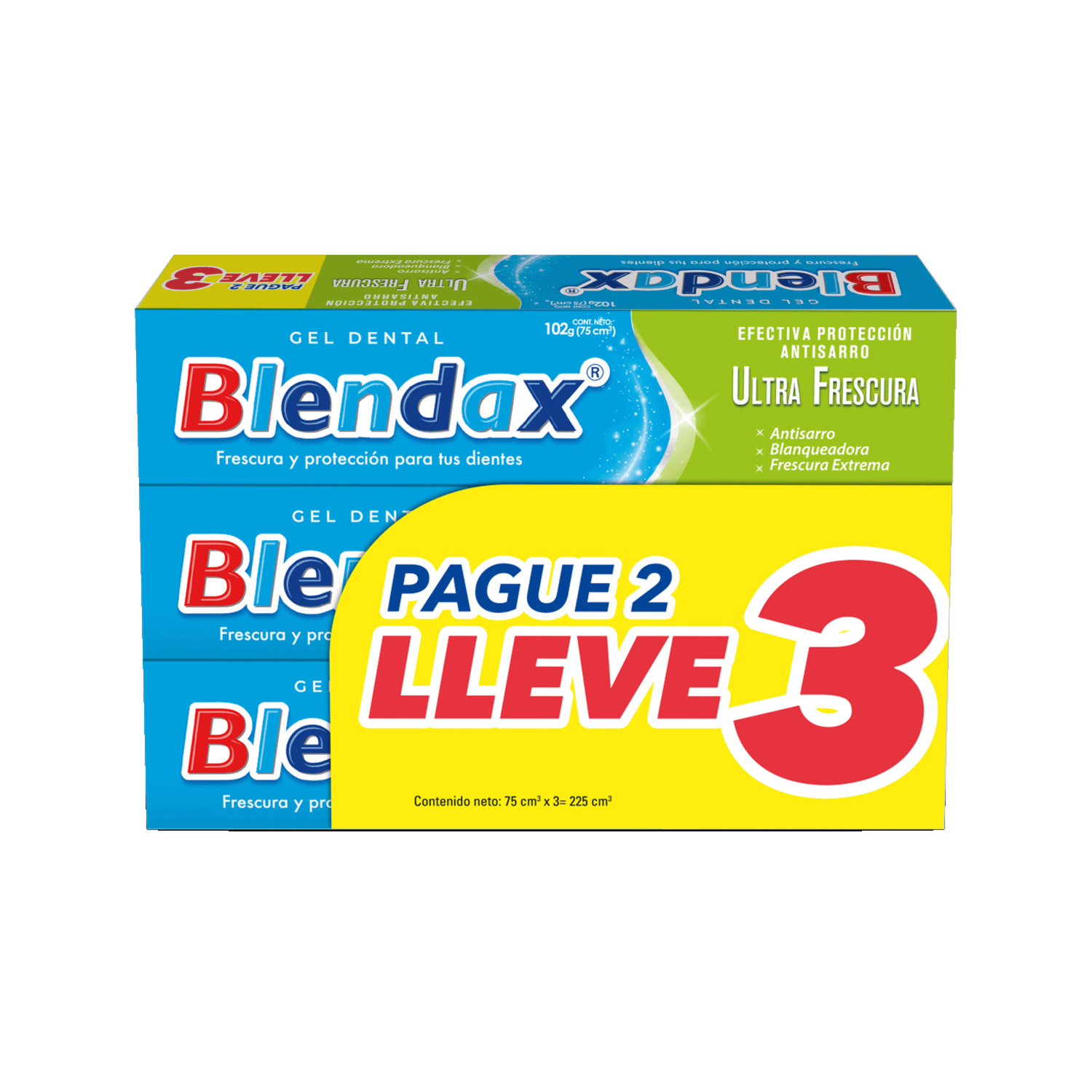 Pasta Dental Ultra Frescura BLENDAX 3 X 75 G – BLENDAX. Disponible en nuestros locales. Precio y stock pueden variar según la tienda.