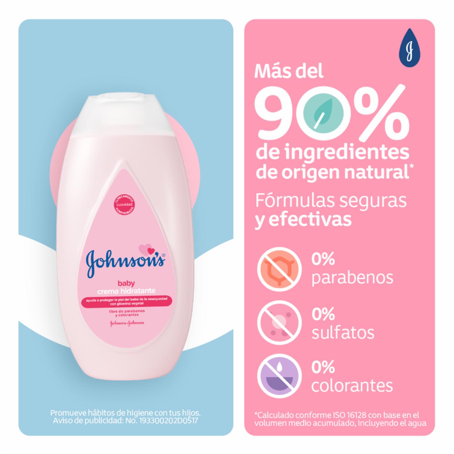 - Crema Líquida JOHNSONS Original contiene glicerina vegetal, dejando la piel del bebé perfectamente suave y ayudando a protegerla de resequedad