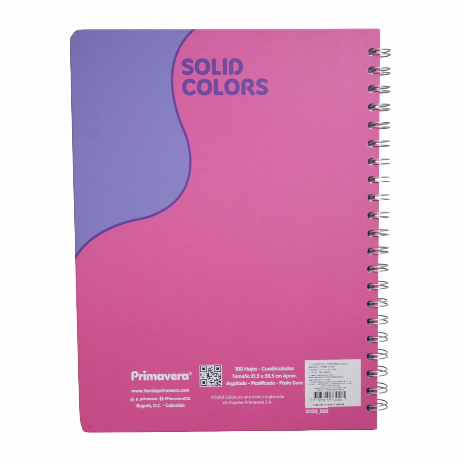 Cuaderno Argollado Cuadros Solid Colors PRIMAVERA 100 Hojas