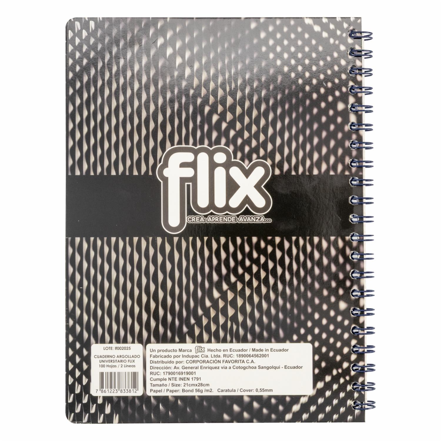 Cuaderno Universitario Argollado 2 Líneas FLIX 100 Hojas