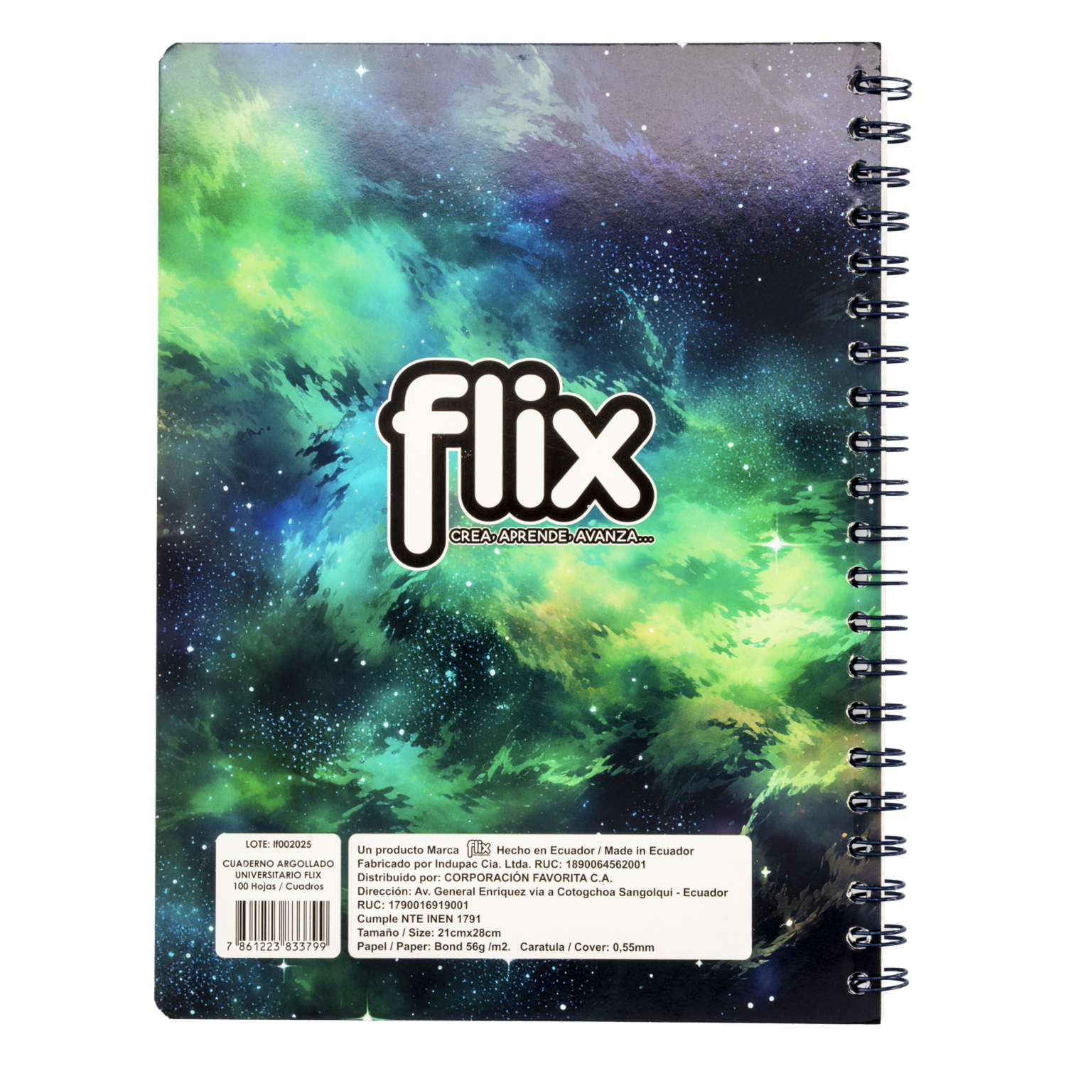Cuaderno Universitario Argollado A Cuadros FLIX 100 Hojas