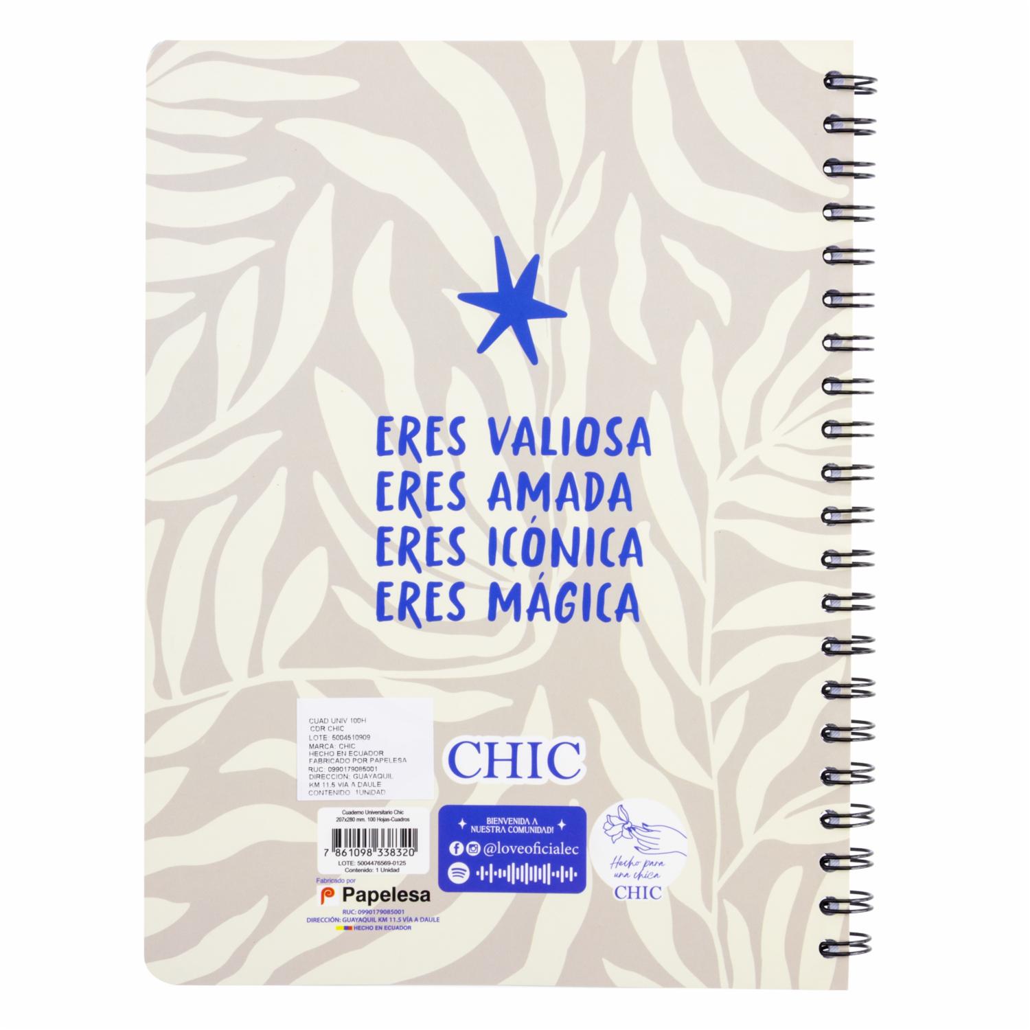 Cuaderno Universitario De Cuadros Chic ESTILO 100 Hojas