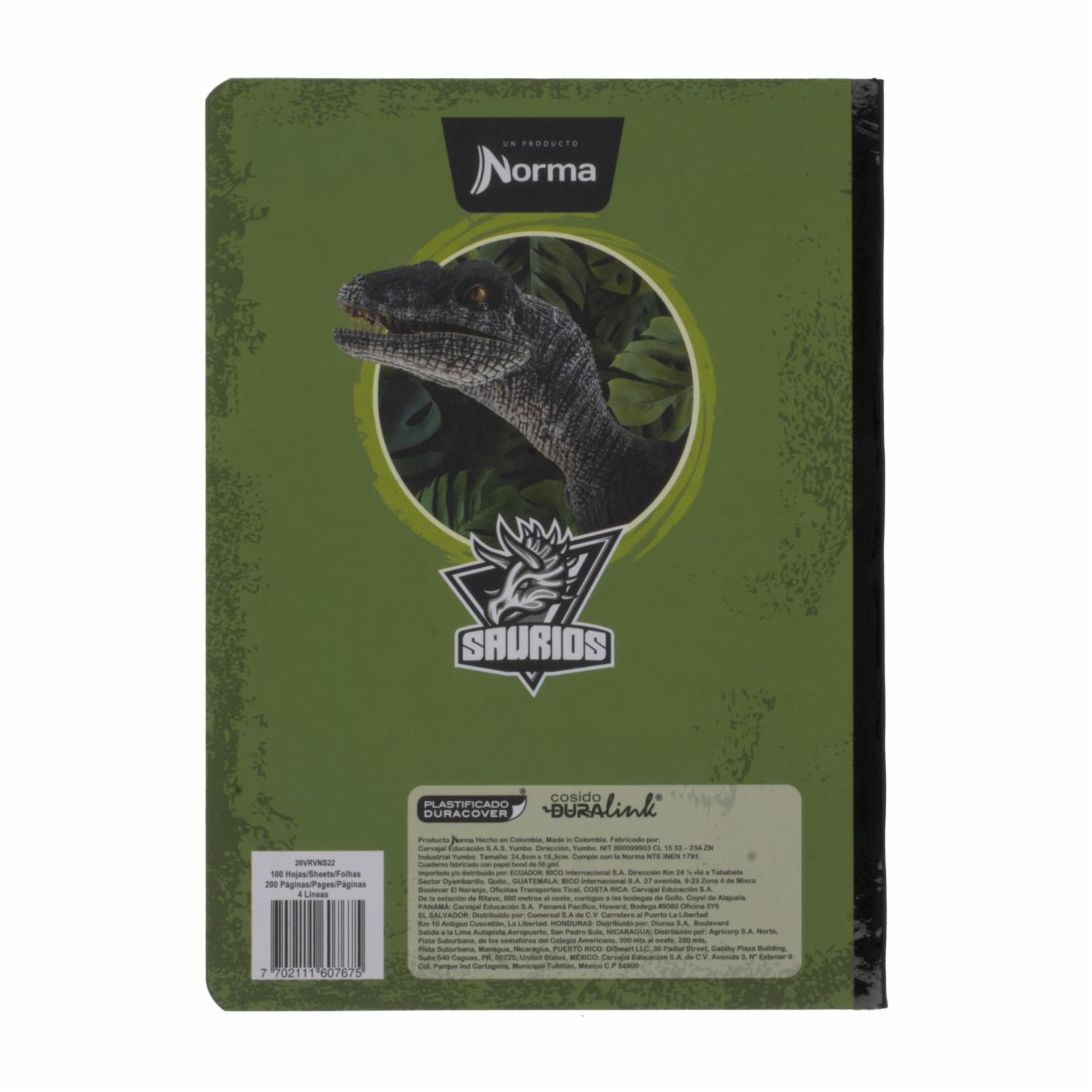 Cuadernos Cosido Saurios Gm 4 Líneas NORMA 100 Hojas