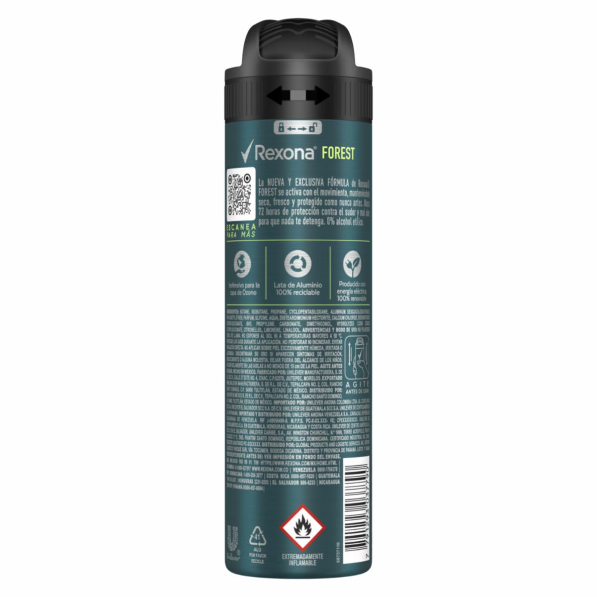 Desodorante En Aerosol Para Caballero Fragancia Forest REXONA 150 Ml