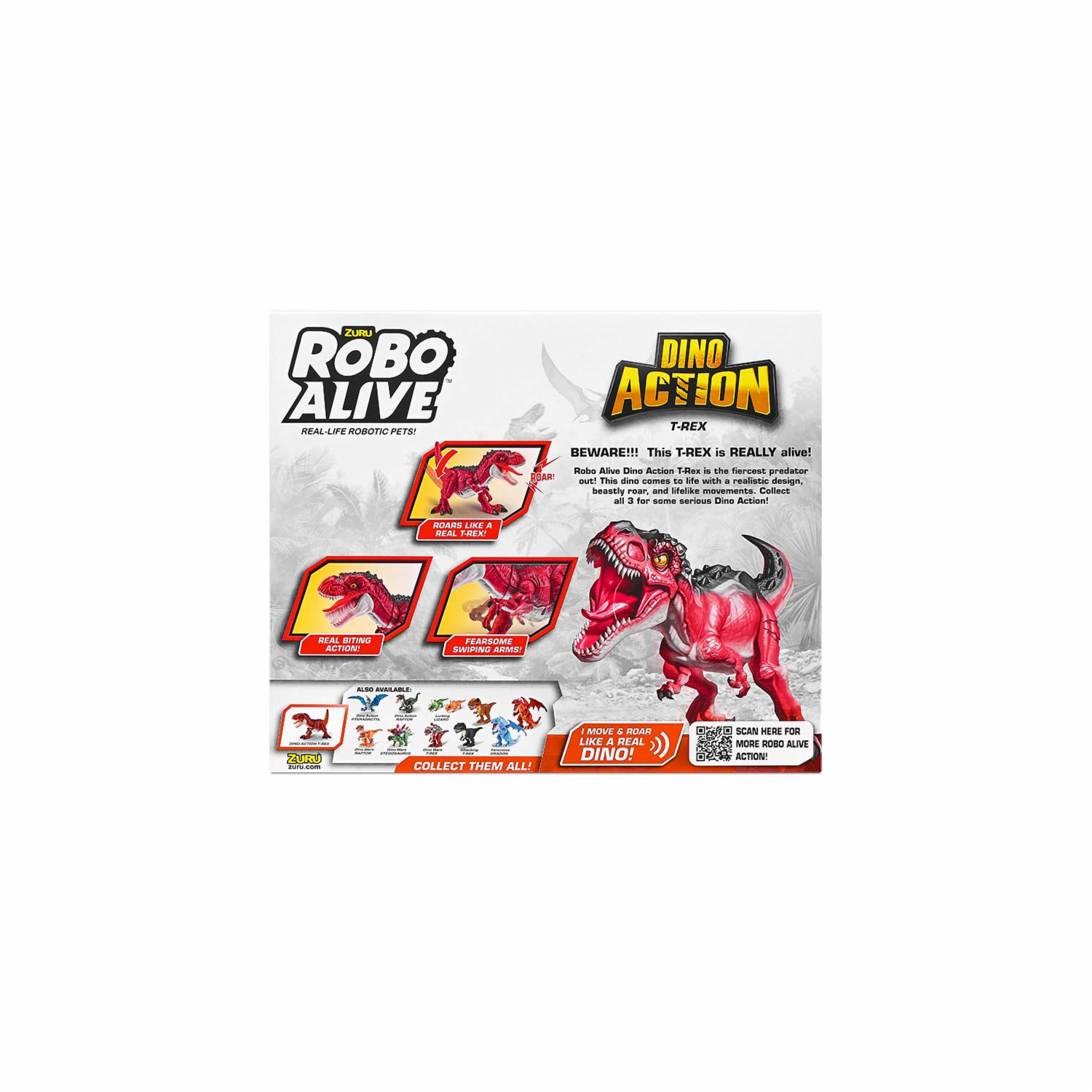 ¡Rono Alive Dino Action T-Rex es el depredador más feroz! Este dinosaurio cobra vida con un diseño realista, un rugido bestial y movimientos realistas
