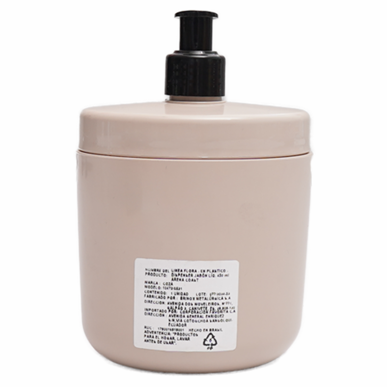 Dispensador De Jabón Plástico Arena Coast Flora COZA 450 Ml