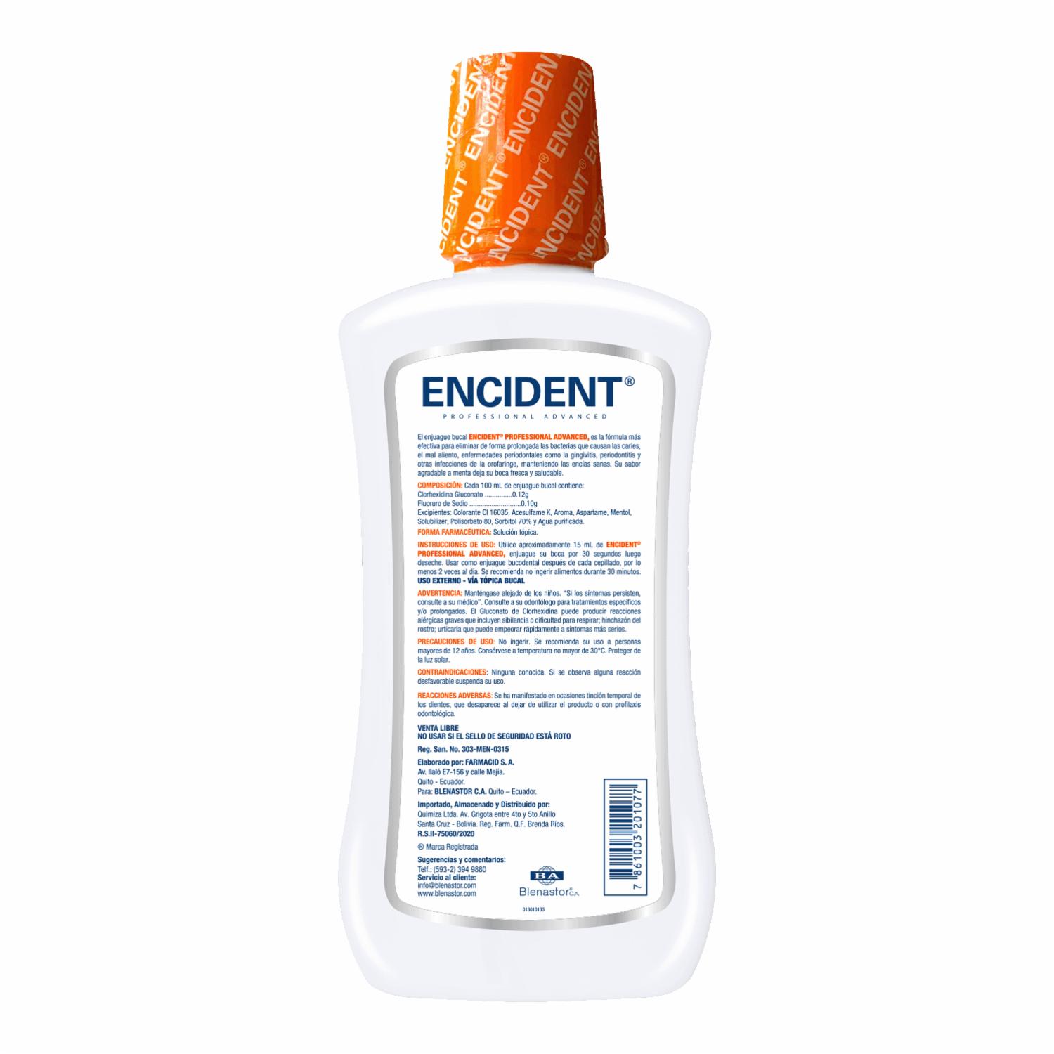 Enjuague Bucal Sabor A Menta Fresca Encías Sensibles Sin Alcohol ENCIDENT 500 Ml
