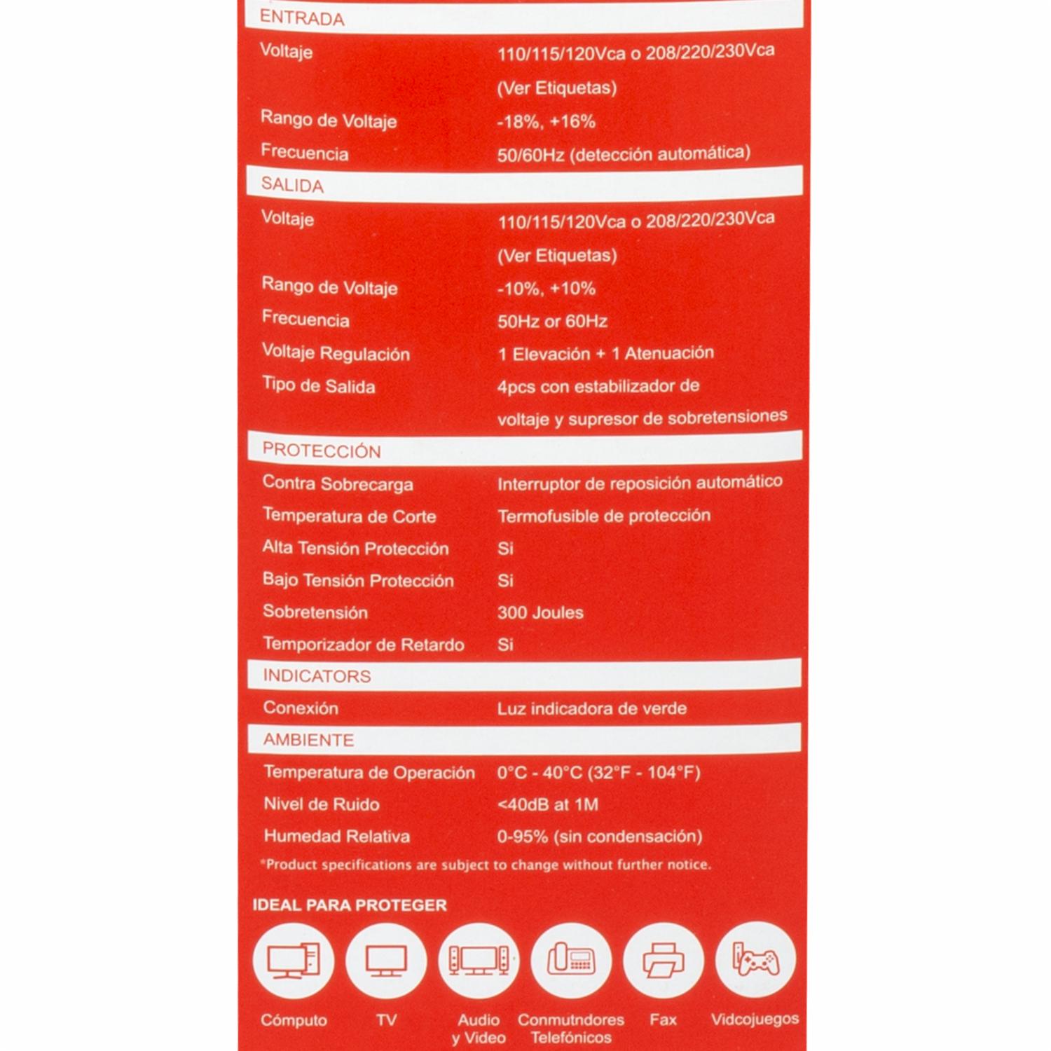 - Sobretensión: 300 Joules