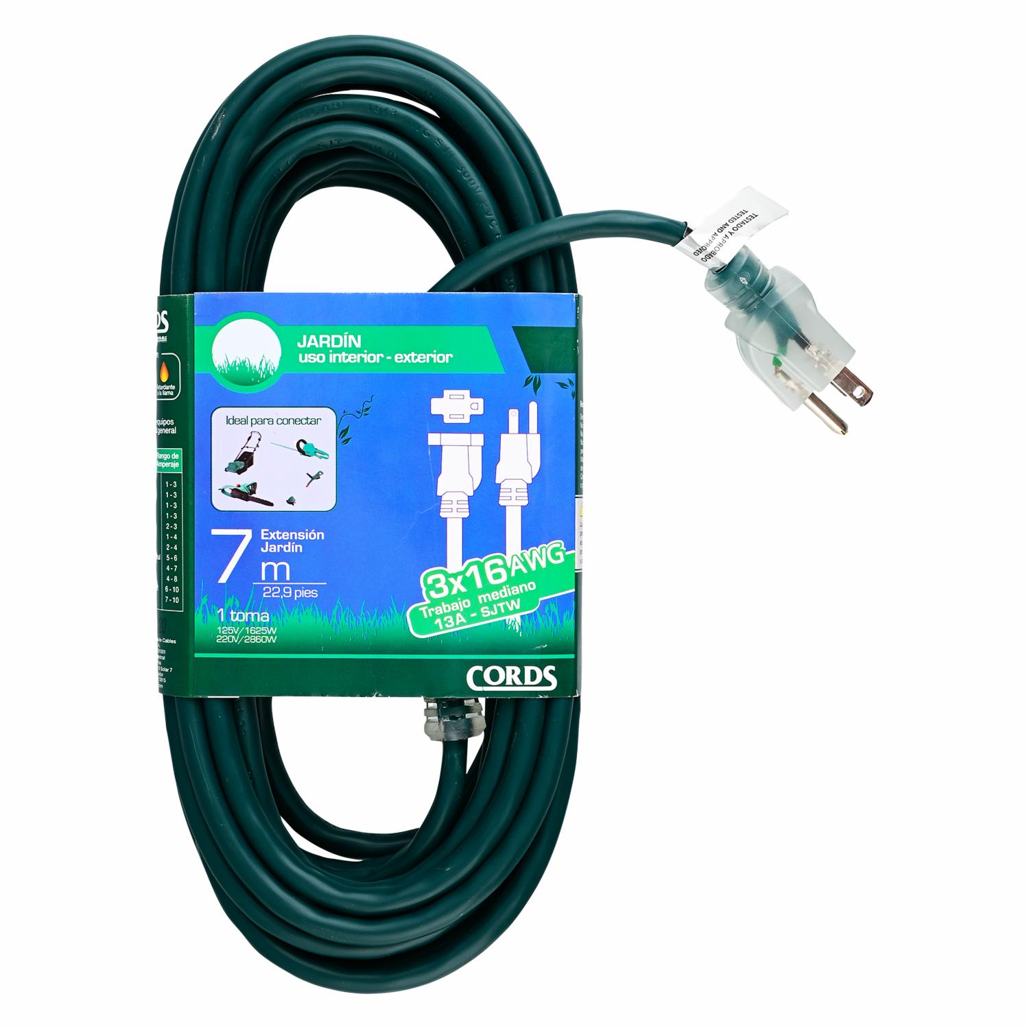 Extensión Eléctrica Para Jardín Verde 3X16 AWG CORDS 7 Metros