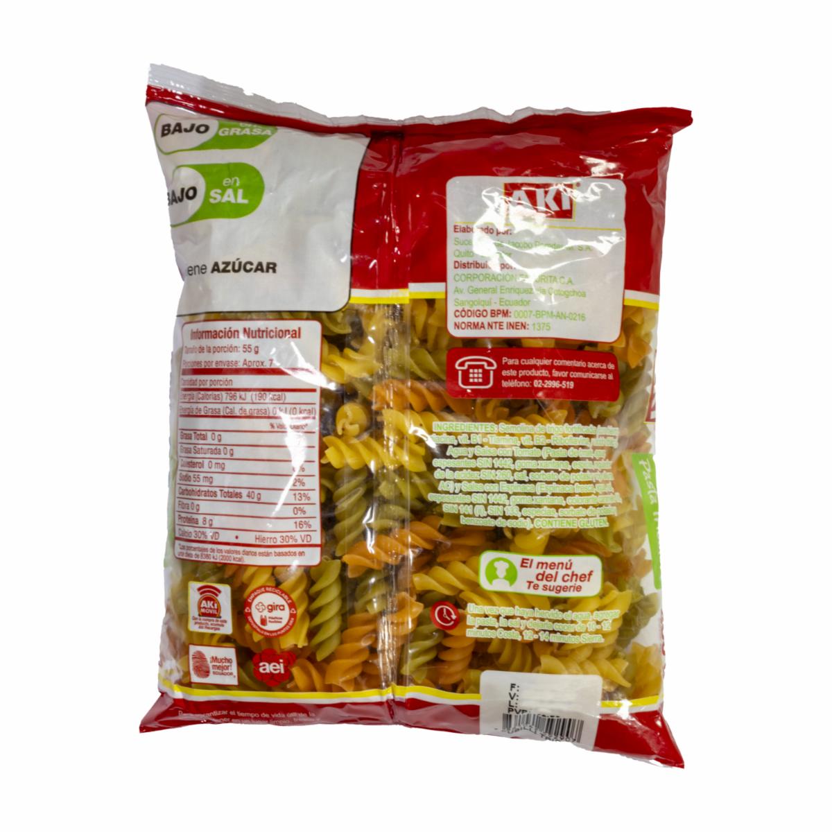 Fideo Fusili Tricolore AKÍ 400 G
