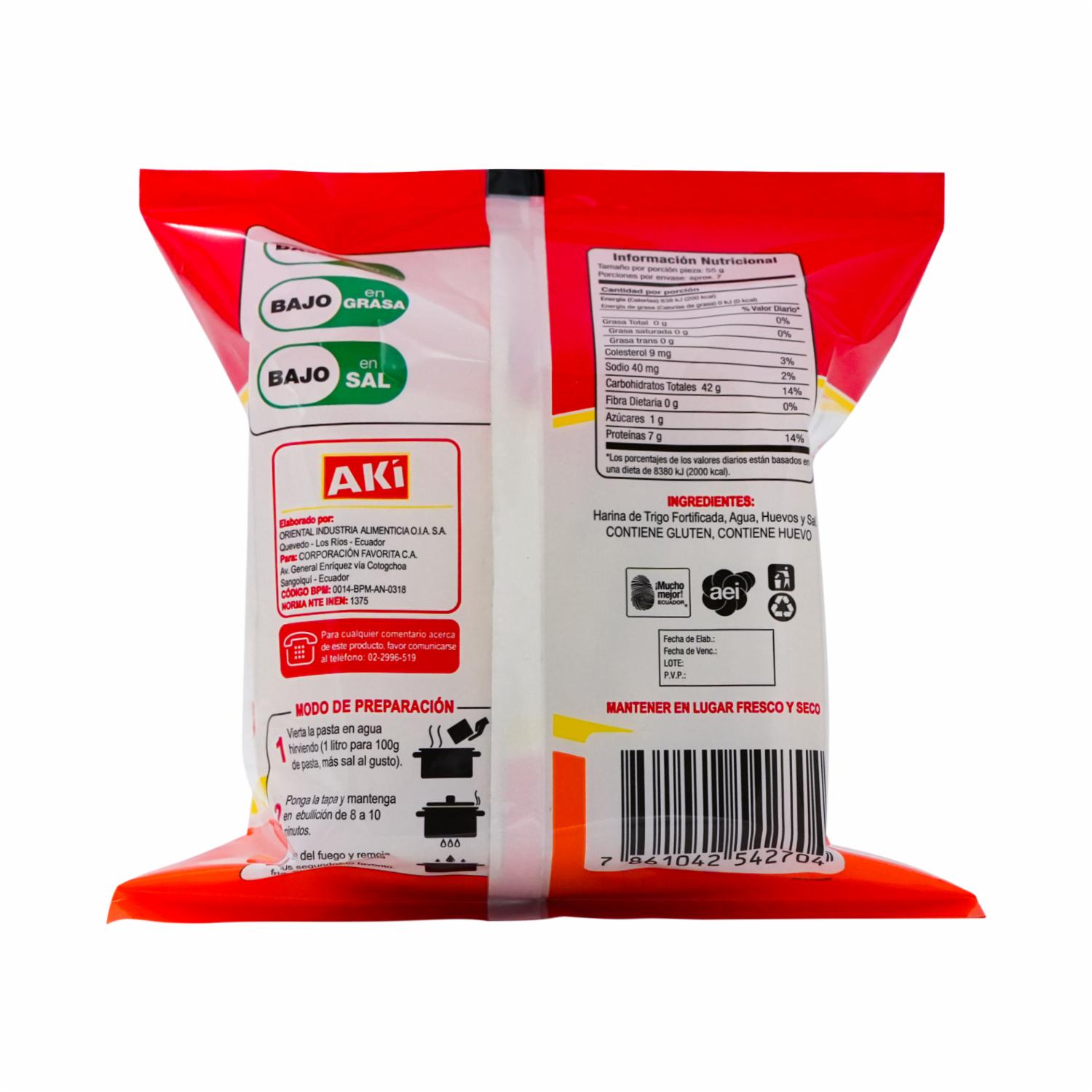Fideo Tallarín Tipo Chino Grueso AKÍ 380 G