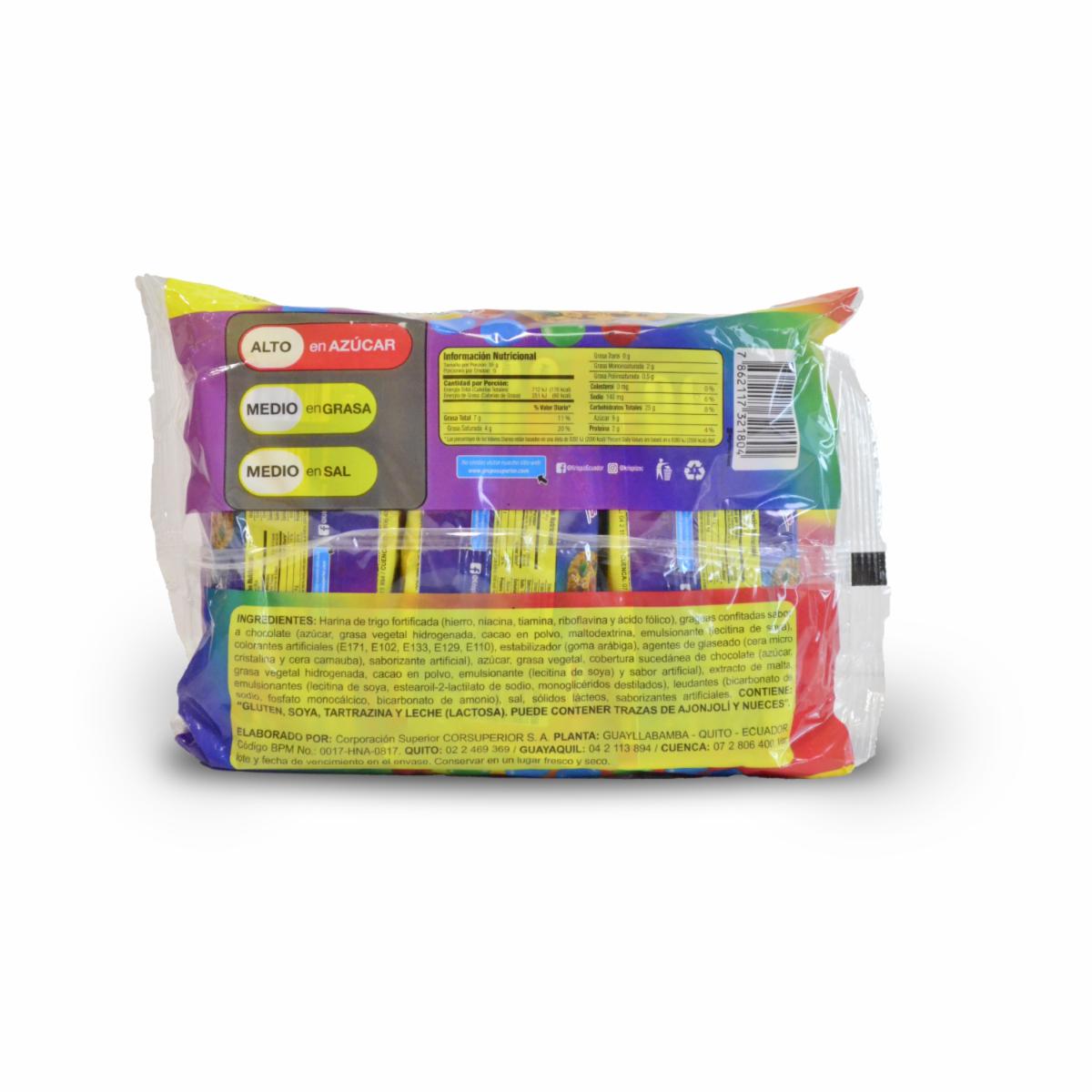 - Krispiz Arcoiris, deliciosa galleta horneada de vainilla con chispas de chocolate y full grajeas de chocolates de colores