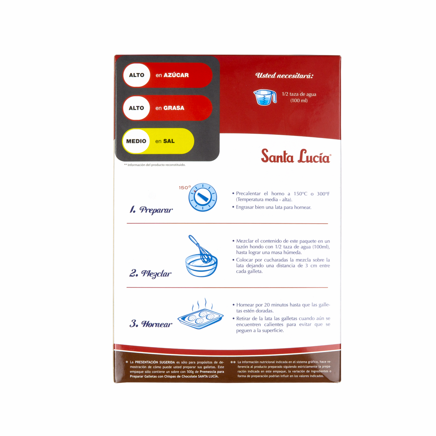 La premezcla para galletas con chispas de chocolate de Santa Lucía es una excelente opción para preparar galletas deliciosas en casa de forma rápida y sencilla