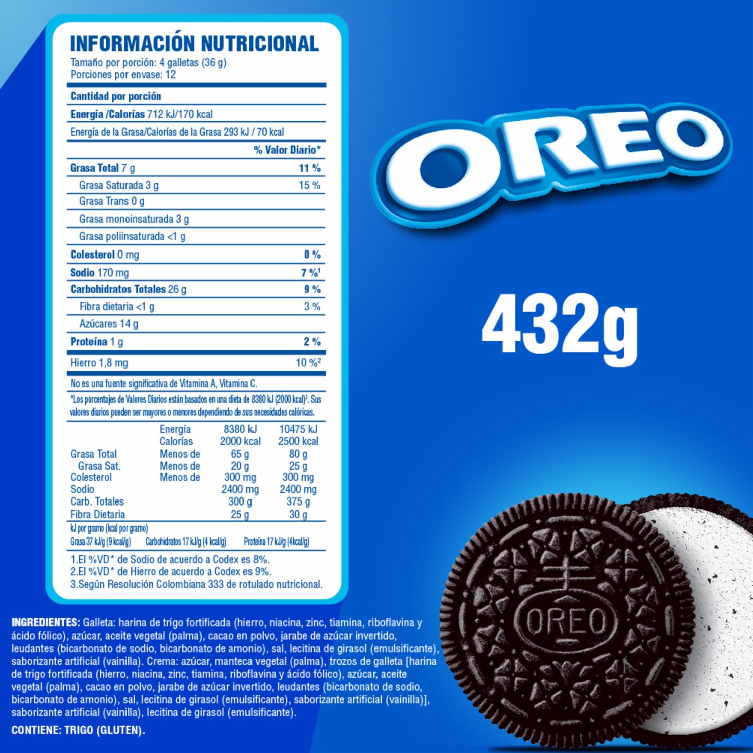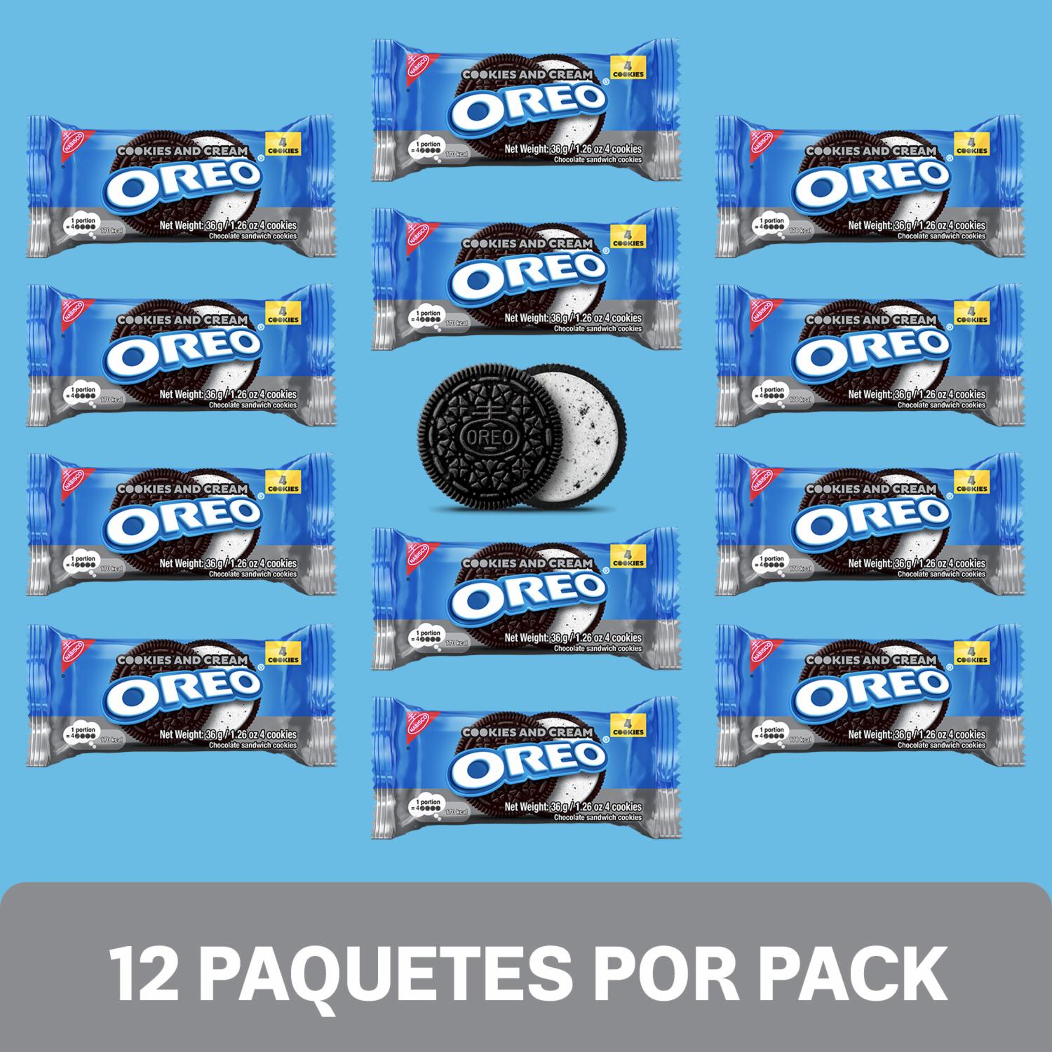 - Galletas Oreo rellenas con crema sabor Cookies & Cream en formato 12pack x 36g c/u 4 galletas cada uno para llevar donde quieras