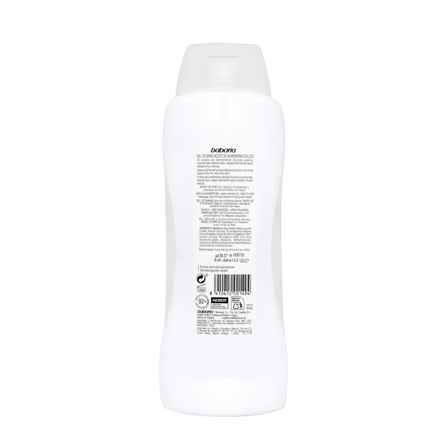 Gel De Baño Con Aceite De Almendras Dulces Cream Sensations BABARIA 600 Ml – BABARIA. Disponible en nuestros locales. Precio y stock pueden variar según la tienda.