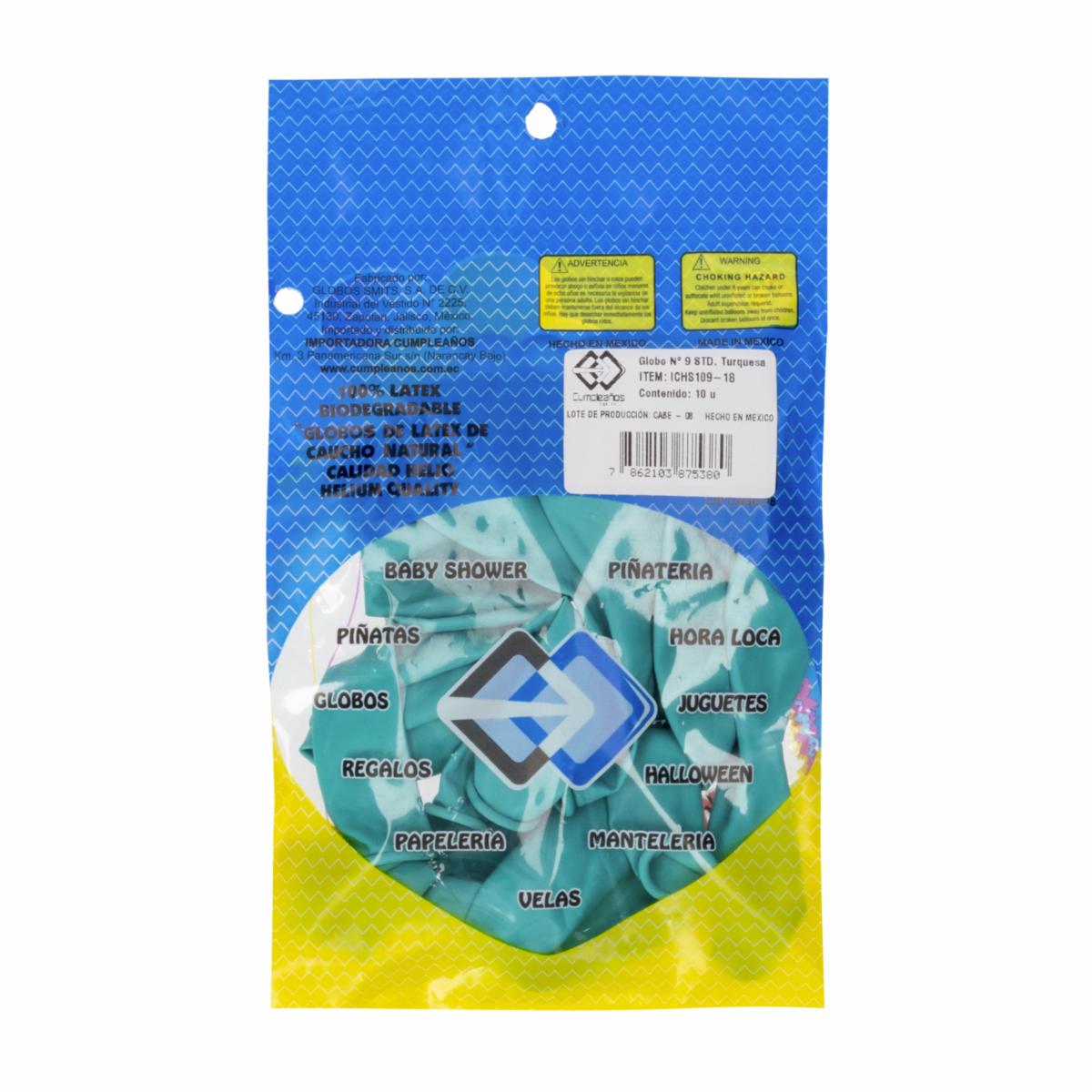 Globo Cumpleaños Estándar Turquesa N.9 Calidad Helio IMPORTADORA CUMPLEAÑOS X 10 Uds