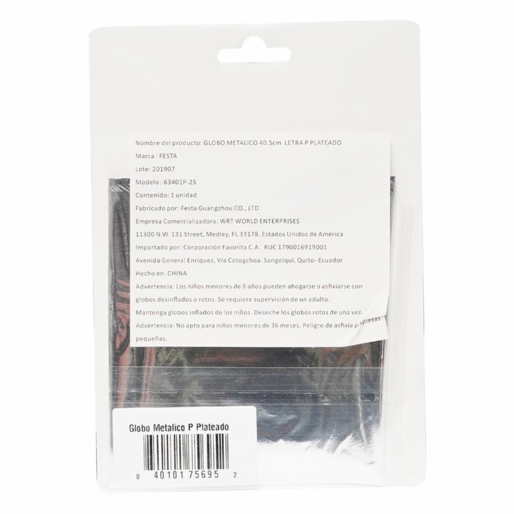 Globo Metálico Plateado BALLOON Letra P
