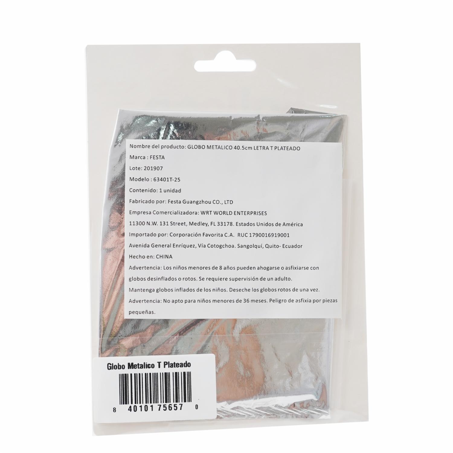 consultando preciosGlobo Metálico Plateado BALLOON Letra T – BALLOON. Disponible en nuestros locales. Precio y stock pueden variar según la tienda.