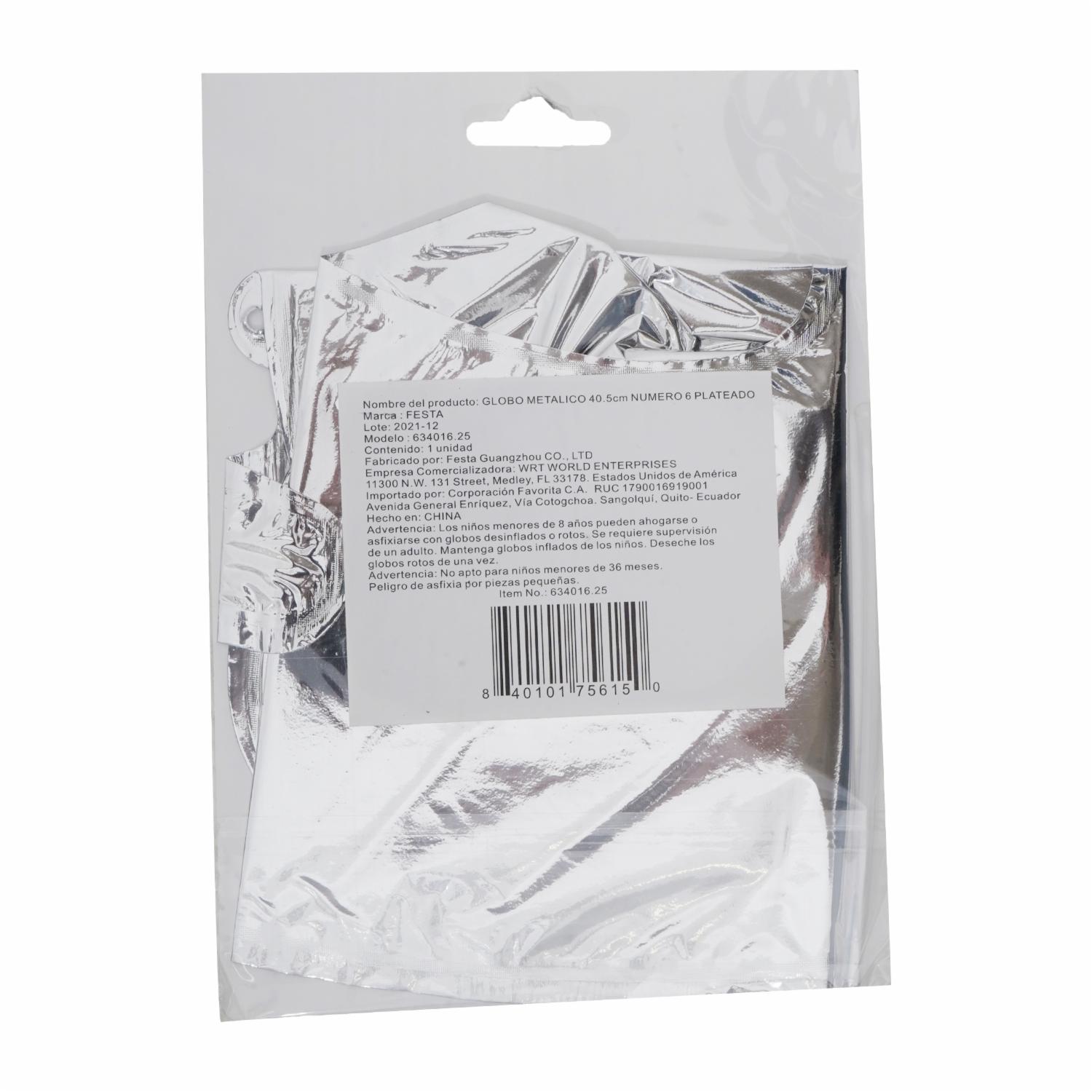consultando preciosGlobo Metálico Plateado BALLOON Número 6 – BALLOON. Disponible en nuestros locales. Precio y stock pueden variar según la tienda.