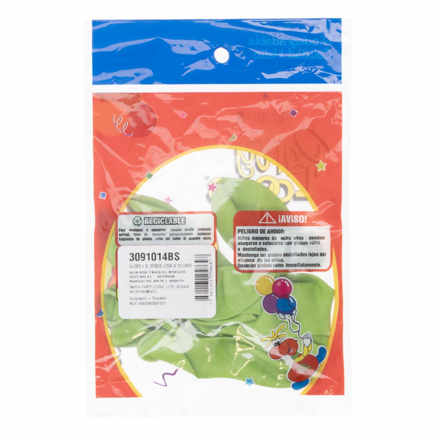 Globo N 9 Verde Lima PARTY LOONS Unidad
