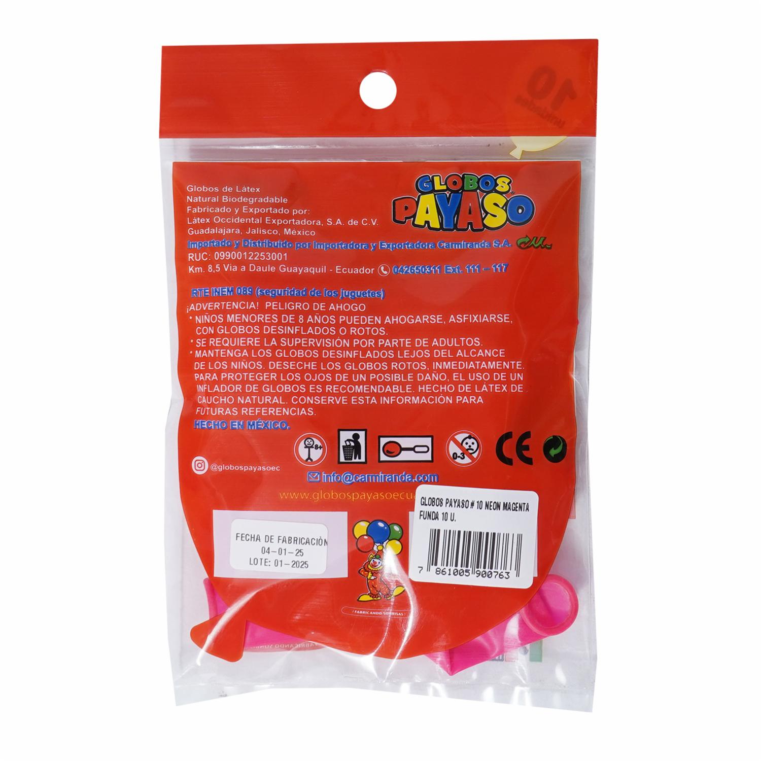 Globo N10 Neón Magenta GLOBOS PAYASO X 10 Uds – GLOBOS PAYASO. Disponible en nuestros locales. Precio y stock pueden variar según la tienda.