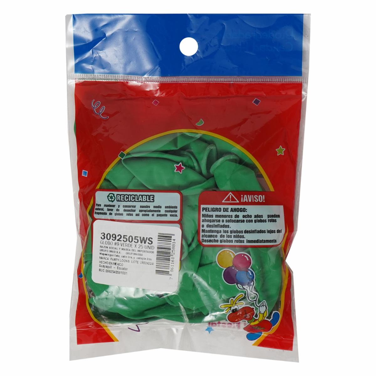 Globo N9 Verde PARTY COLORS Unidad