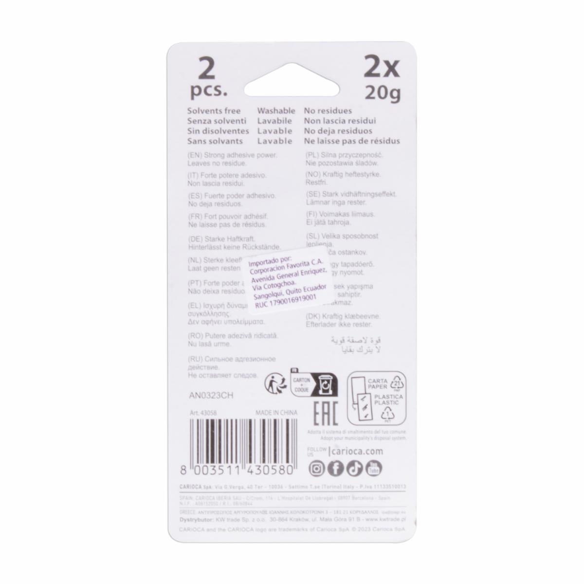 Goma Escolar En Barra CARIOCA 2 X20 G