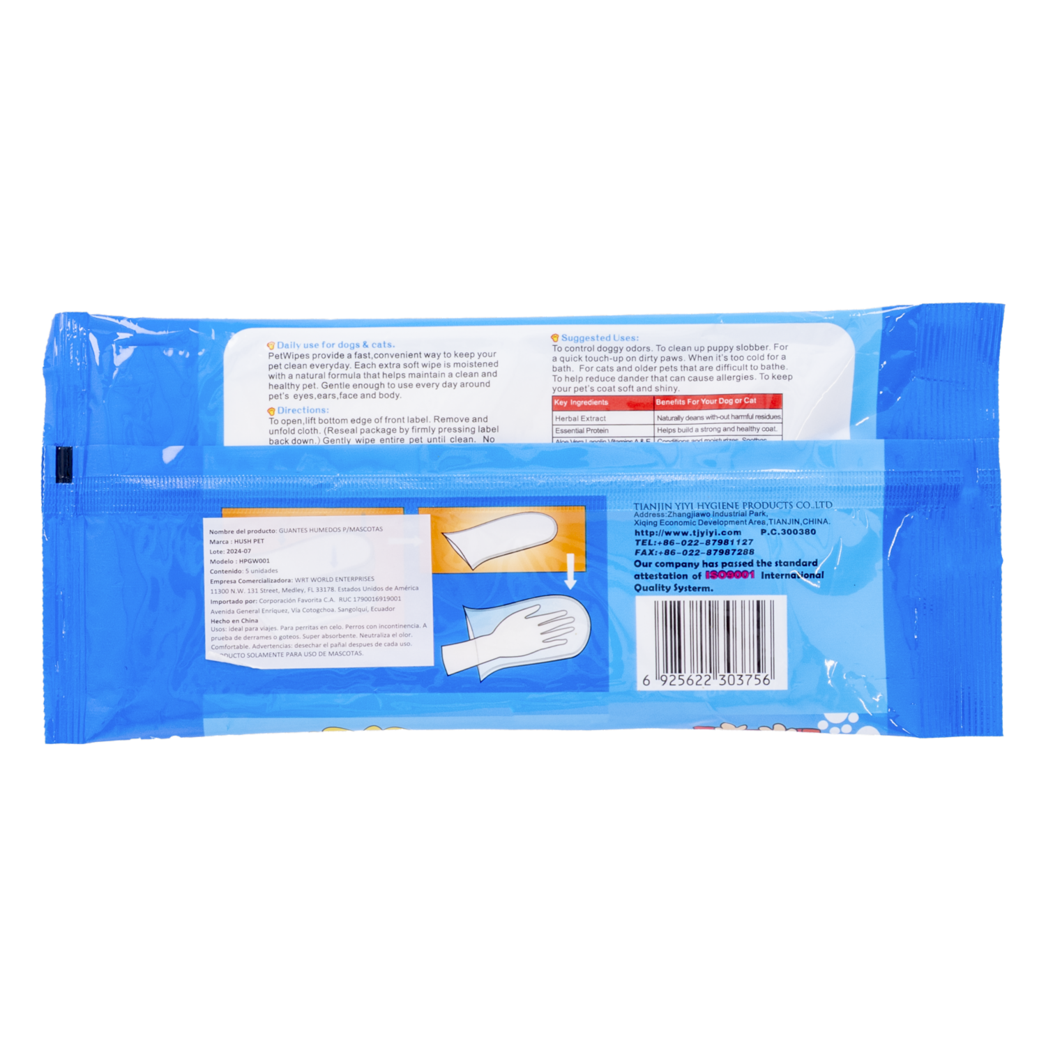 Guantes Húmedos Para Mascotas HUSHPET X5 Uds
