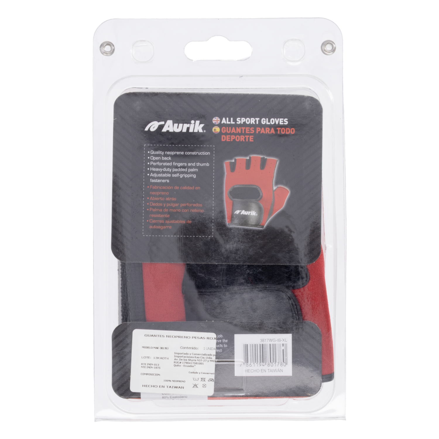 Guantes Neopreno Pesas Rojo Negro AURIK Extra Grande – AURIK. Disponible en nuestros locales. Precio y stock pueden variar según la tienda.