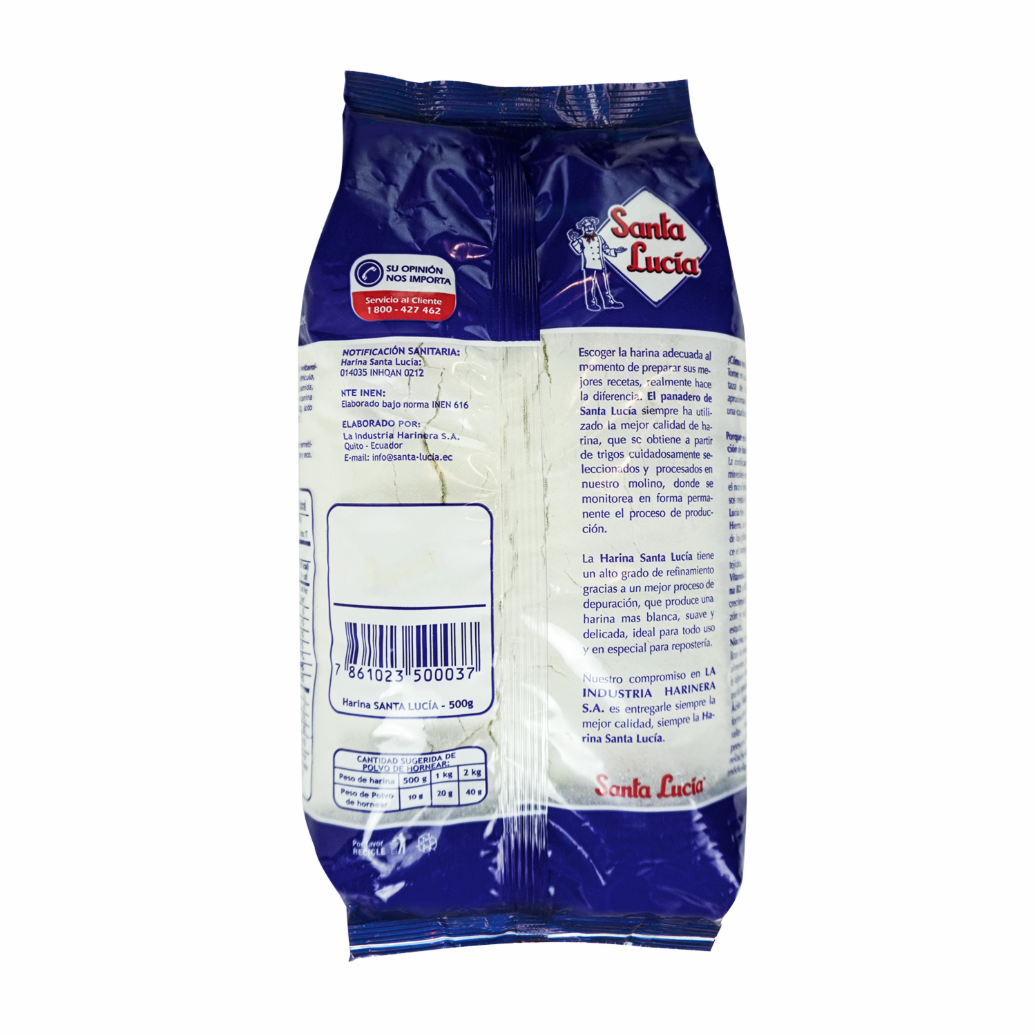 - La Harina Santa Lucía sin Polvo de Hornear es una harina pastelera elaborada a base de trigo de alta calidad, se caracteriza por tener un bajo grado de extracción que garantiza su pureza y blancura