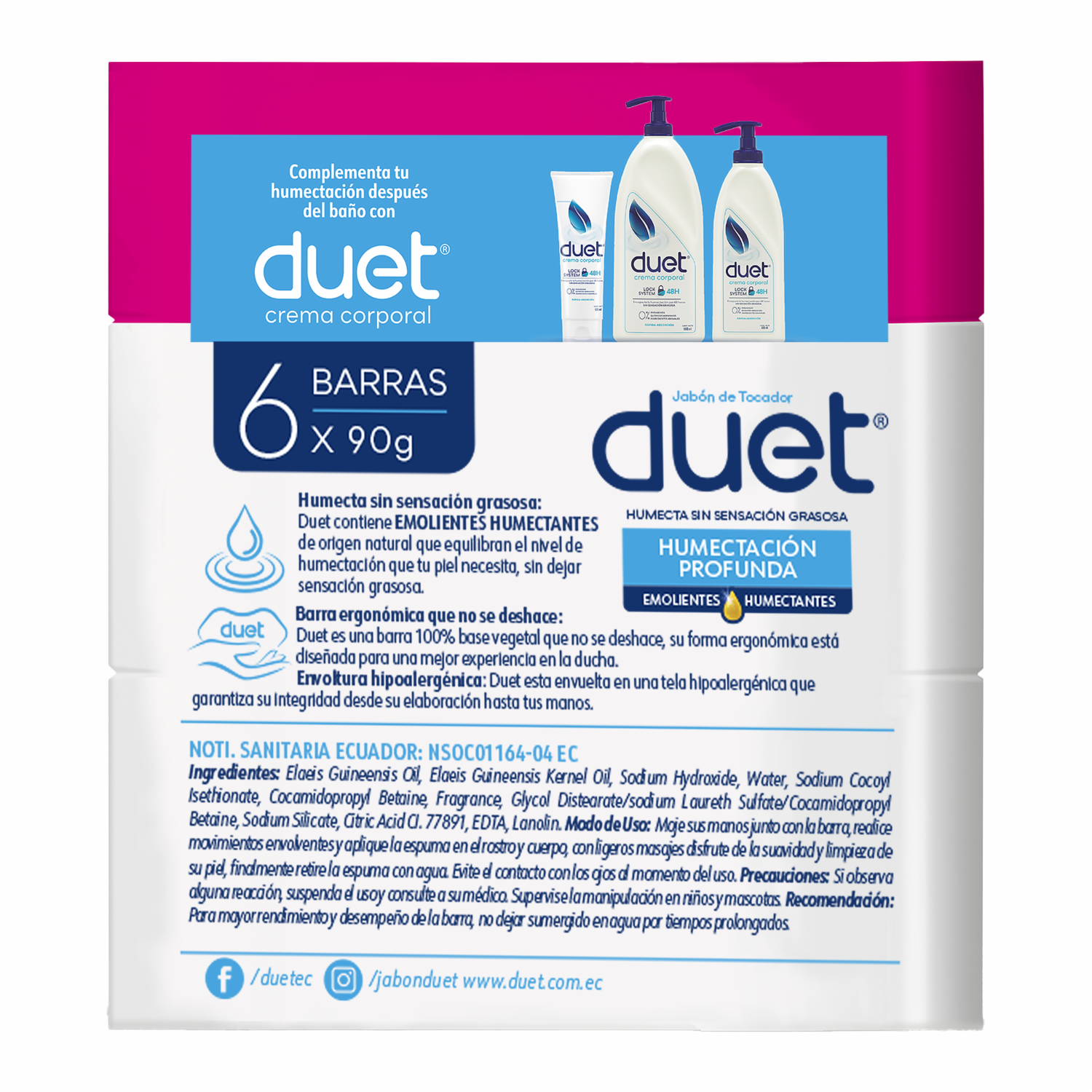 - Jabón De Tocador Corporal Duet Que Humecta Tu Piel Sin Dejar Sensación Grasosa. Contiene 540 Gramos