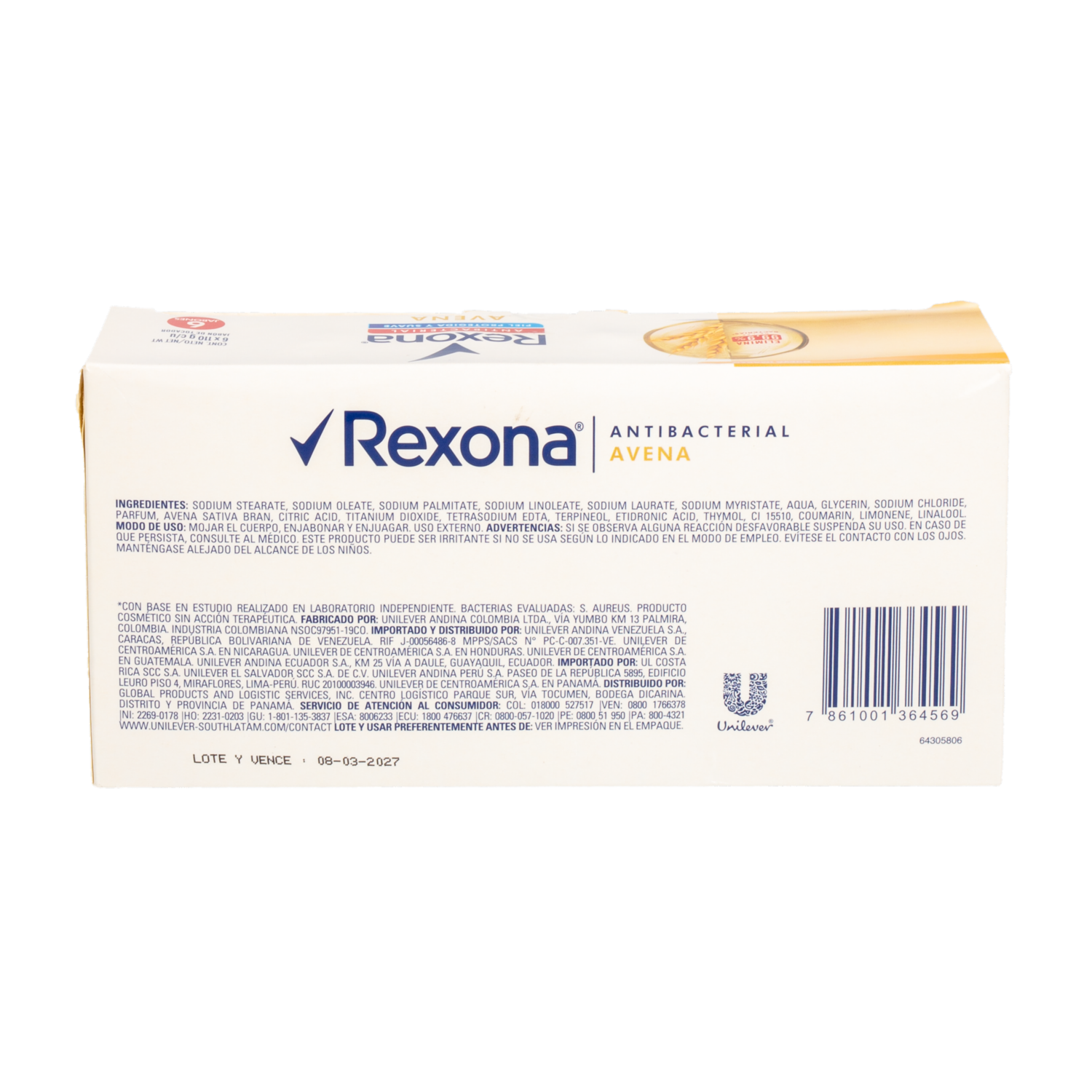 - El jabón en barra antibacterial de Avena Rexona está diseñado para proporcionar una limpieza suave y efectiva, además de protección contra las bacterias. Cada paquete incluye tres barras de jabón de 110 g cada una, garantizando un suministro prolongado para el cuidado diario de toda la familia