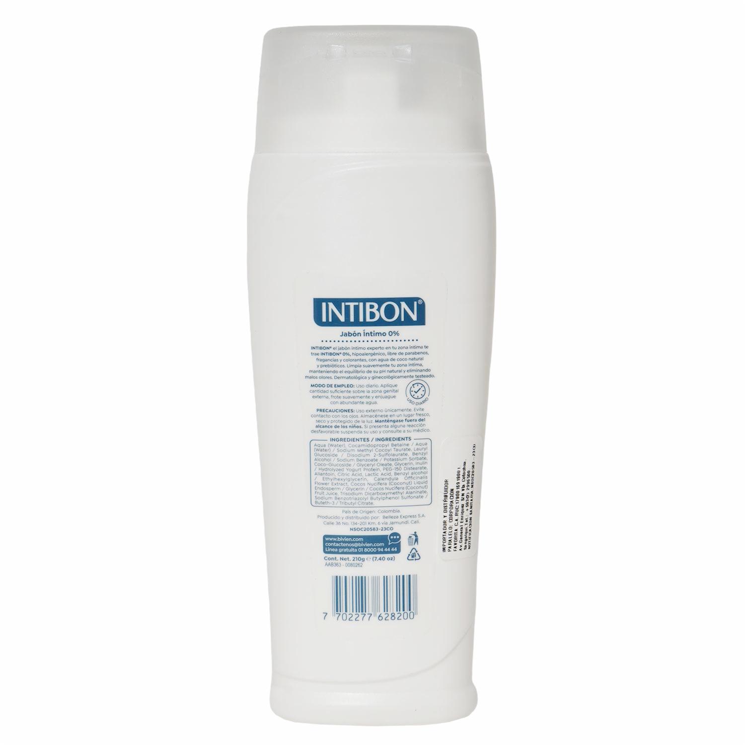 Jabón Íntimo Para Dama Sin Fragancias Sin Colorantes Ni Parabenos Hipoalergénico INTIBON 210 G