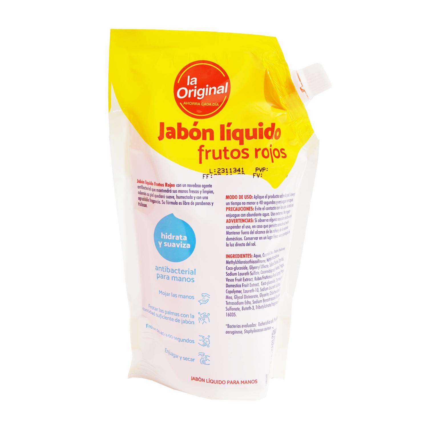consultando preciosJabón Líquido Aroma A Frutos Rojos LA ORIGINAL De 500 Ml – LA ORIGINAL. Disponible en nuestros locales. Precio y stock pueden variar según la tienda.