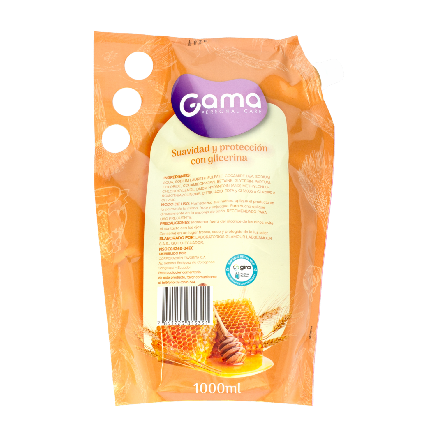- El jabón líquido con avena y miel GAMA de 1000 ml ofrece una limpieza suave y nutritiva, enriquecida con las propiedades hidratantes de la avena y la miel. Ideal para pieles sensibles, proporciona una sensación de suavidad y frescura mientras cuida y protege la piel, dejándola hidratada y delicadamente perfumada. Perfecto para el uso diario
