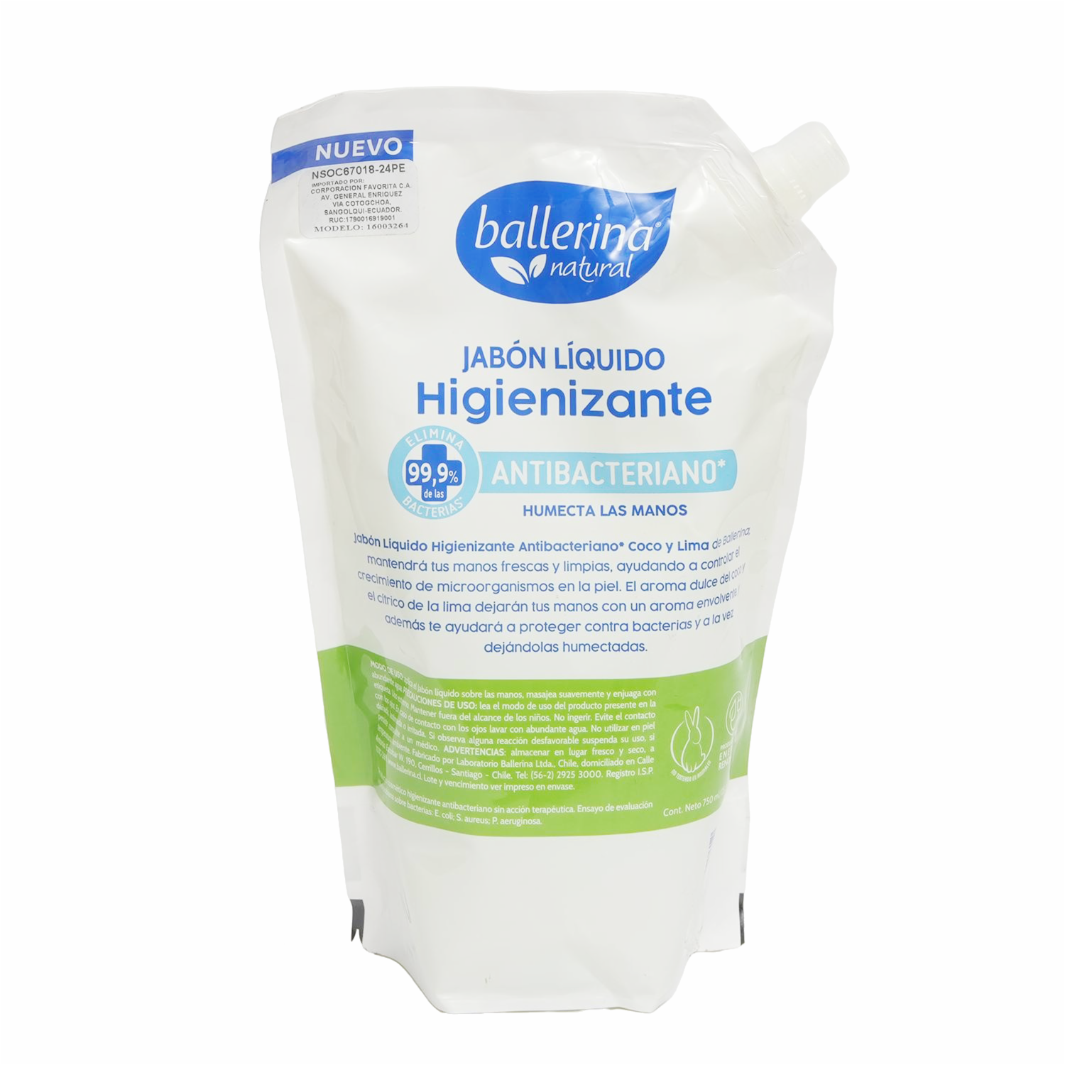 Jabón Líquido Higienizante Antibacteriano Fragancia Coco Y Lima BALLERINA 750 Ml