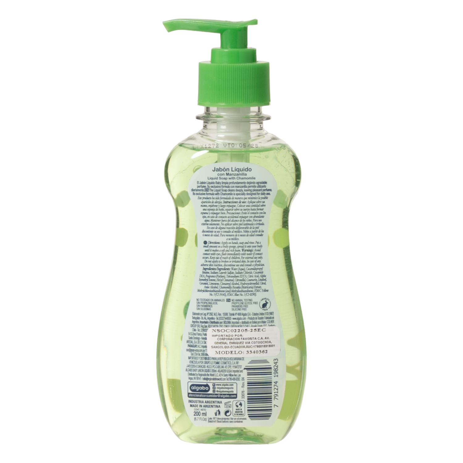 Jabón Líquido Para Bebé Tiernas Cosquillas Hipoalergénico ALGABO 200 Ml