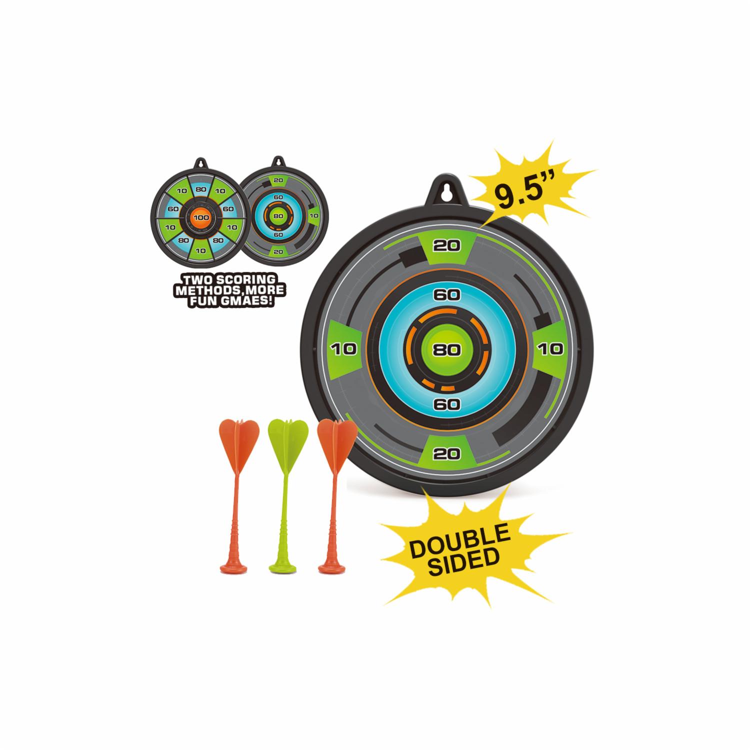 - ¡Demuestra tu habilidad lanzando dardos con este espectacular juego! Apunta al número mayor y gana la partida. El tablero tiene dos métodos de puntaje en la parte delantera y trasera para un juego más divertido, diseñado para colgarlo en cualquier pared o superficie con sujetador. ¡Acierta en la diversión en Juguetón, donde cada lanzamiento es una victoria!