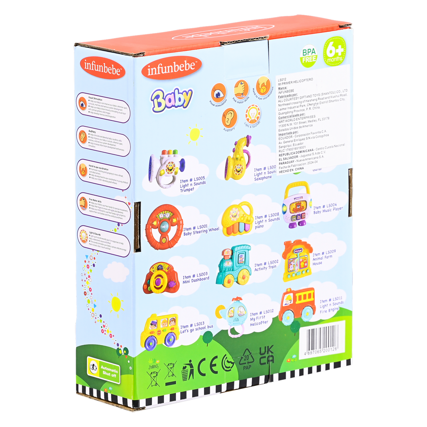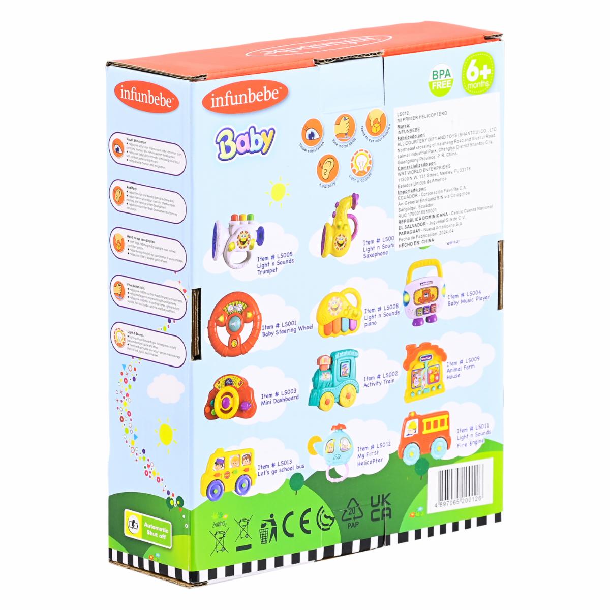 - ¡Descubre la magia del Helicóptero Musical para Bebé de Infunbebe! Este juguete divertido y didáctico ayudará a tu pequeño a mejorar la capacidad de atención, curiosidad y memoria. Desarrolla el cerebro infantil y la estimulación sensorial con sonidos que motivan a mirar, escuchar, tocar y sentir. ¡Cuida, protege y disfruta de la compañía de tu Helicóptero Musical en Juguetón, donde la educación y la diversión se unen!