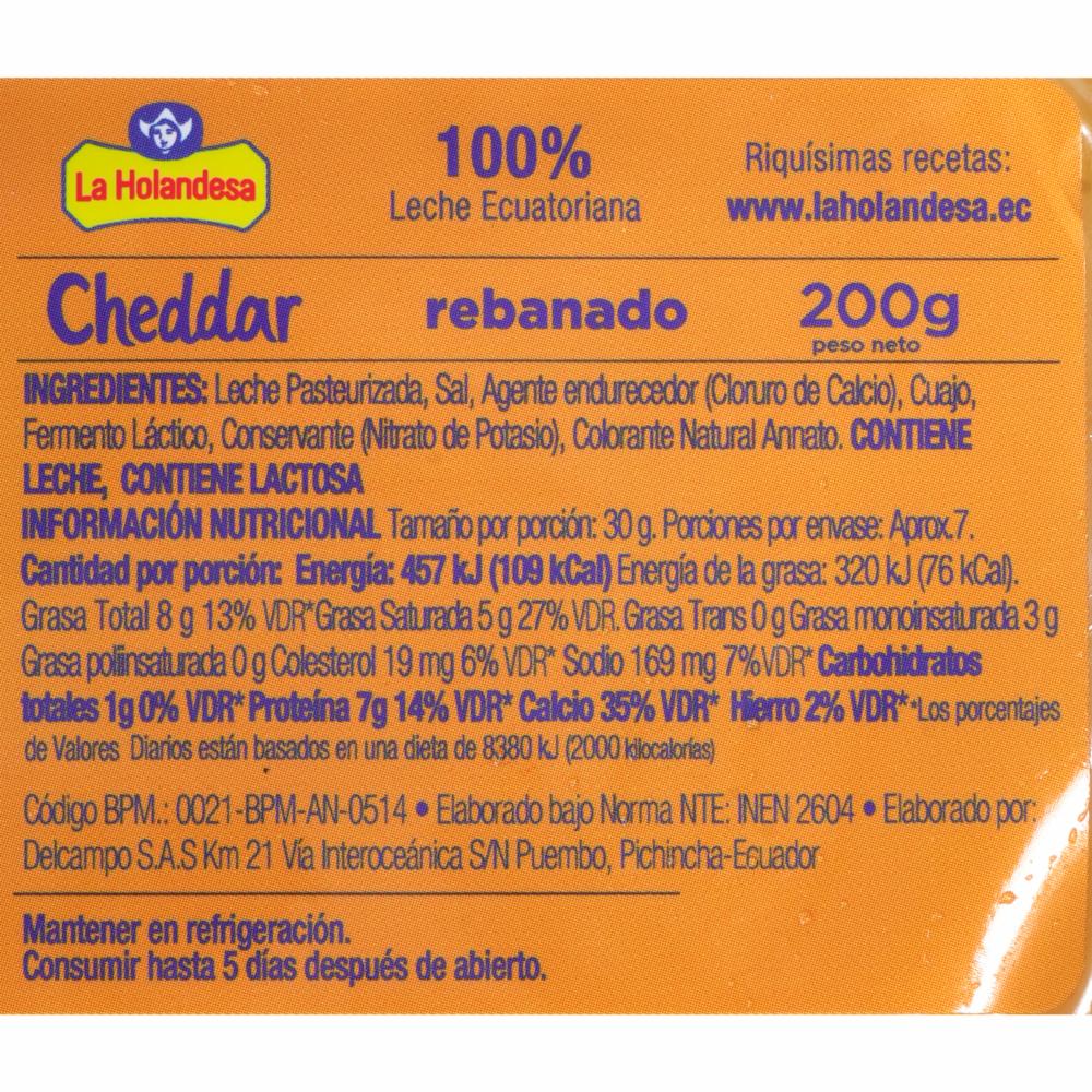 Queso Cheddar Rebanado LA HOLANDESA 200 G