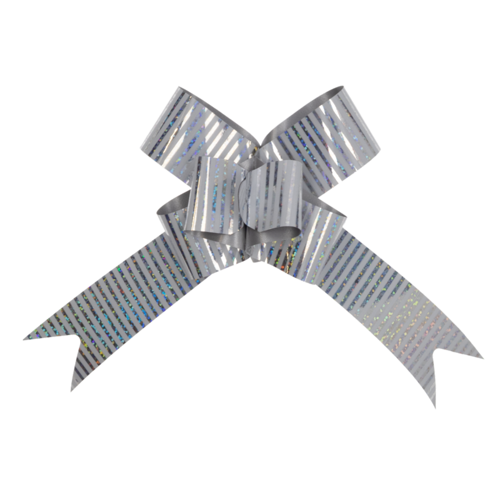 Lazo Mágico Para Regalos Plata Impreso Paralelos Blanco SPLENDOR 42 Cm X 19 Mm