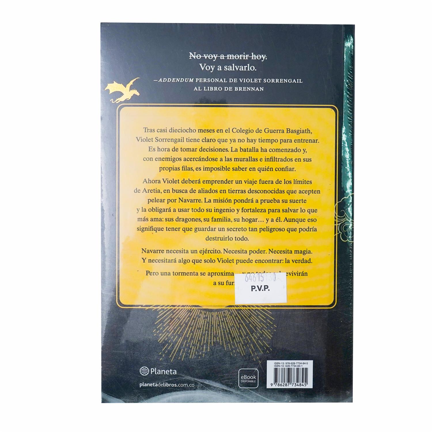 - Tras casi dieciocho meses en el Colegio de Guerra Basgiath, Violet Sorrengail tiene claro que no queda tiempo para entrenar. Hay que tomar decisiones. La batalla ha comenzado y, con enemigos acercándose a las murallas e infiltrados en sus propias filas, es imposible saber en quién confiar
