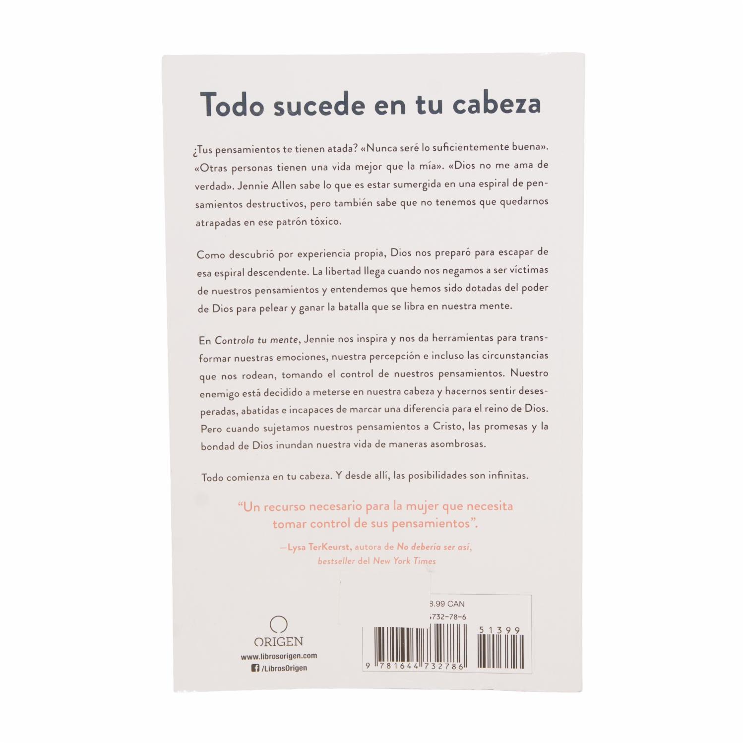 - Controla tu mente desafía a las mujeres cristianas a romper ciclos de pensamientos tóxicos como la ansiedad y la victimización. Jennie Allen muestra, con base en la Biblia y la neurociencia, cómo la batalla espiritual más grande ocurre en nuestra mente