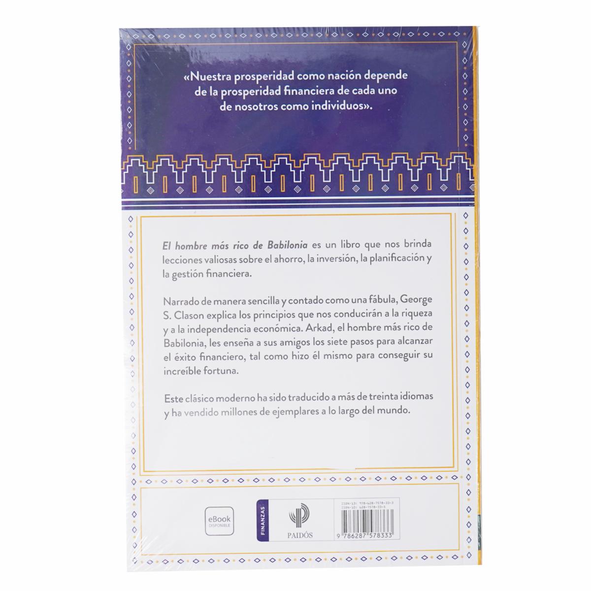 - El hombre más rico de Babilonia es un libro que nos brinda enseñanzas valiosas sobre el ahorro, la inversión, la planificación y la gestión financiera. Narrado de manera sencilla y contado como una fábula, George S. Clason explica los principios que le conducen a la riqueza y a la independencia económica. Arkad, el hombre más rico de Babilonia, les enseña a sus amigos los siete pasos para alcanzar el éxito financiero, tal como hizo él mismo para conseguir su increíble fortuna
