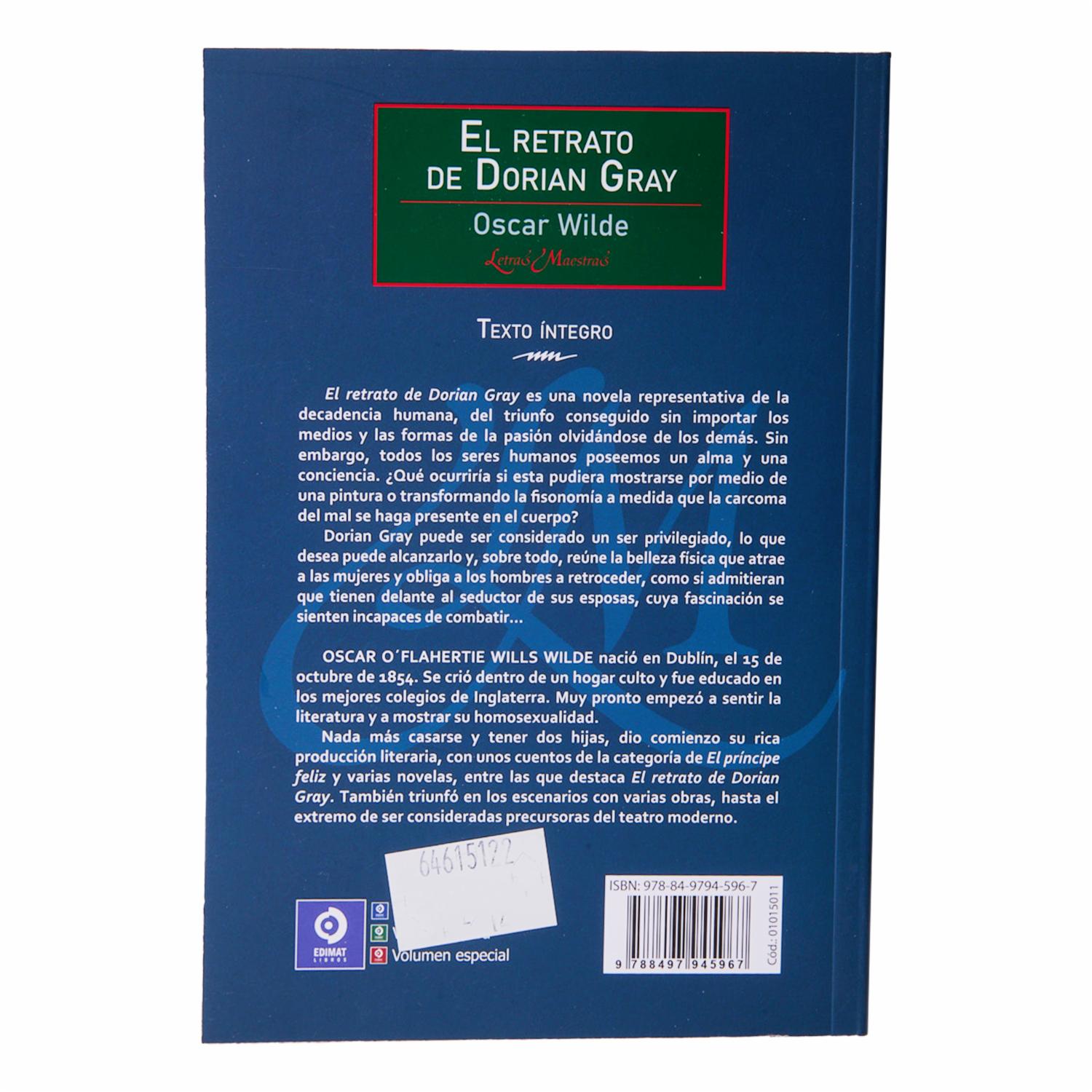 Libro El Retrato De Dorian Gray EDIMAT 224 Páginas
