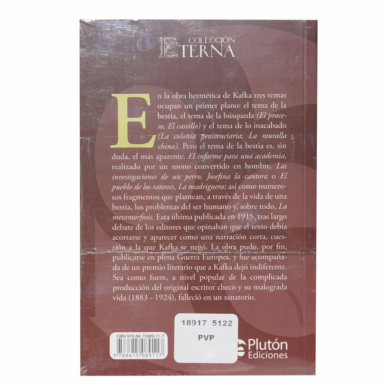 Libro La Metamorfosis PLUTÓN 128 Páginas